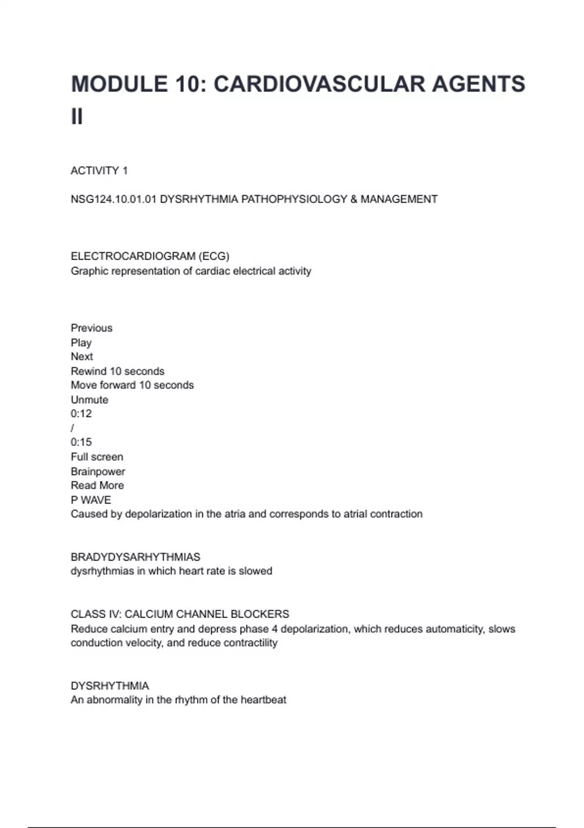 NSG124.10.01.01 DYSRHYTHMIA PATHOPHYSIOLOGY & MANAGEMENT