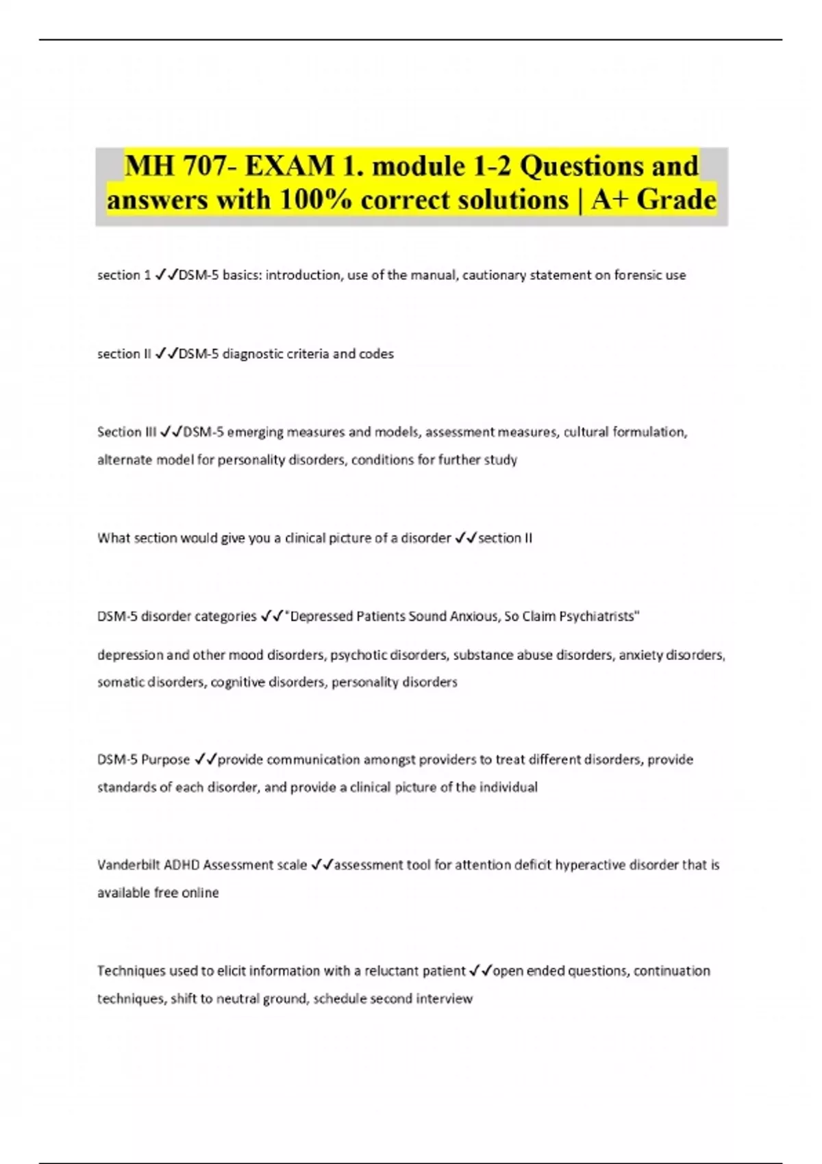 MH 707- EXAM 1. module 1-2 Questions and answers with 100% correct solutions | A+ Grade