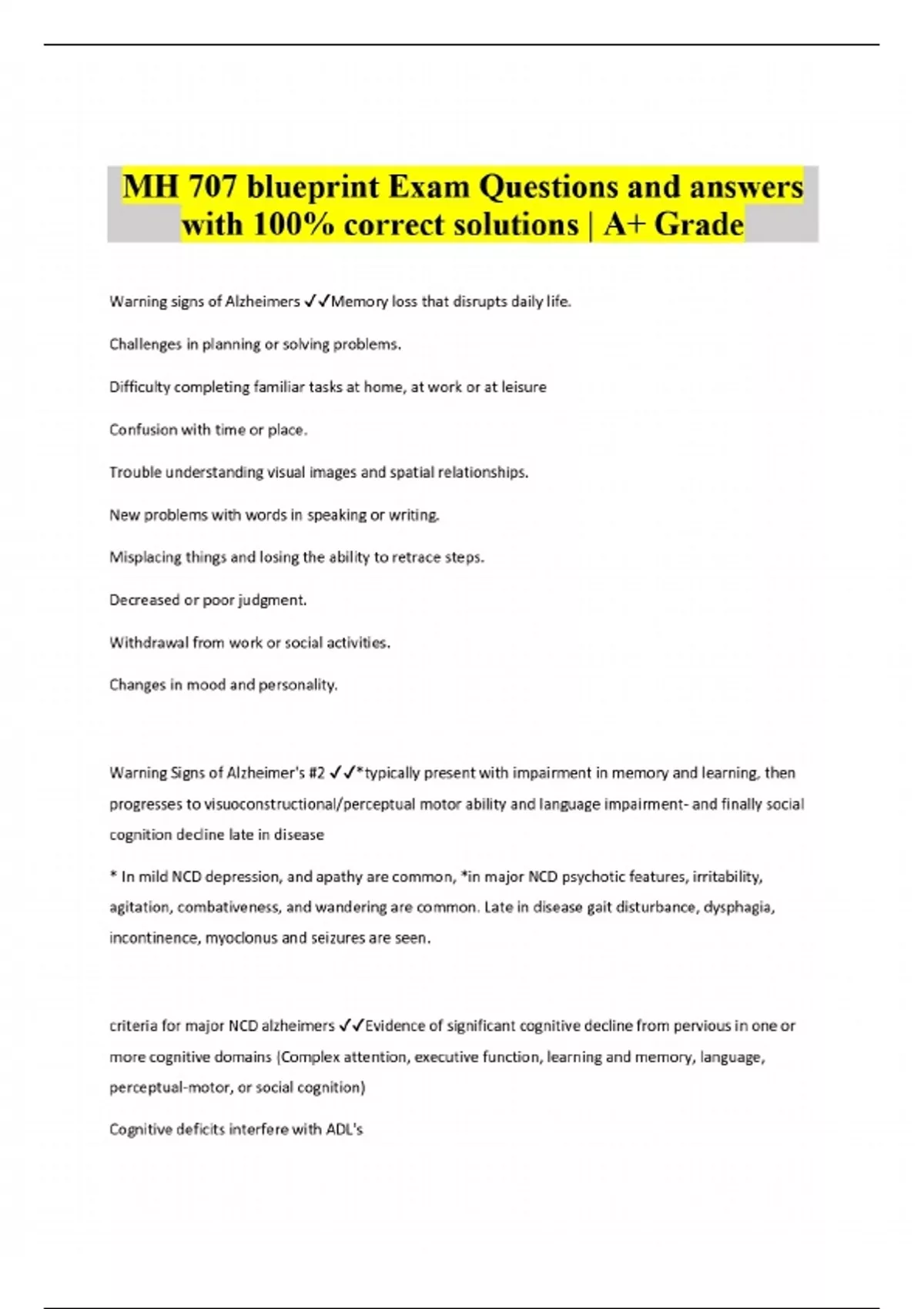 MH 707 blueprint Exam Questions and answers with 100% correct solutions | A+ Grade
