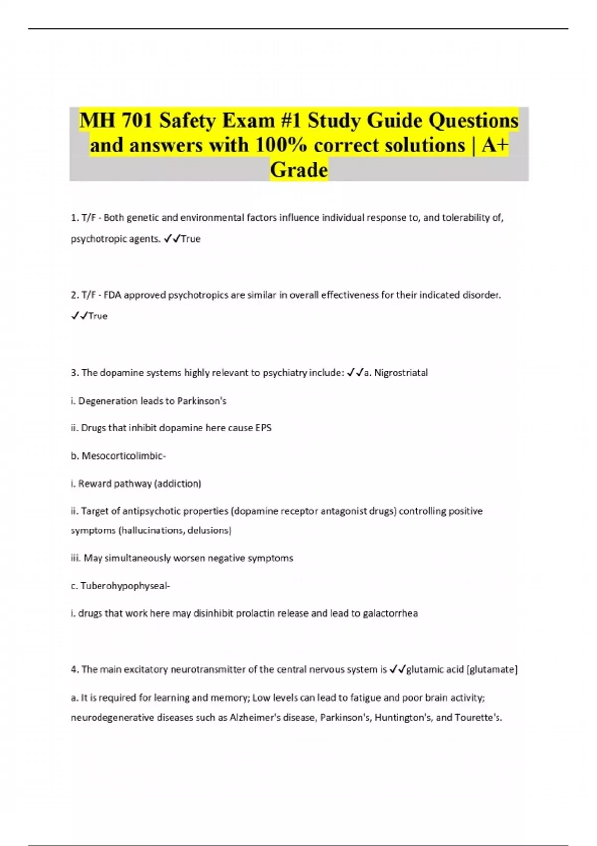 MH 701 Safety Exam #1 Study Guide Questions and answers with 100% correct solutions | A+ Grade