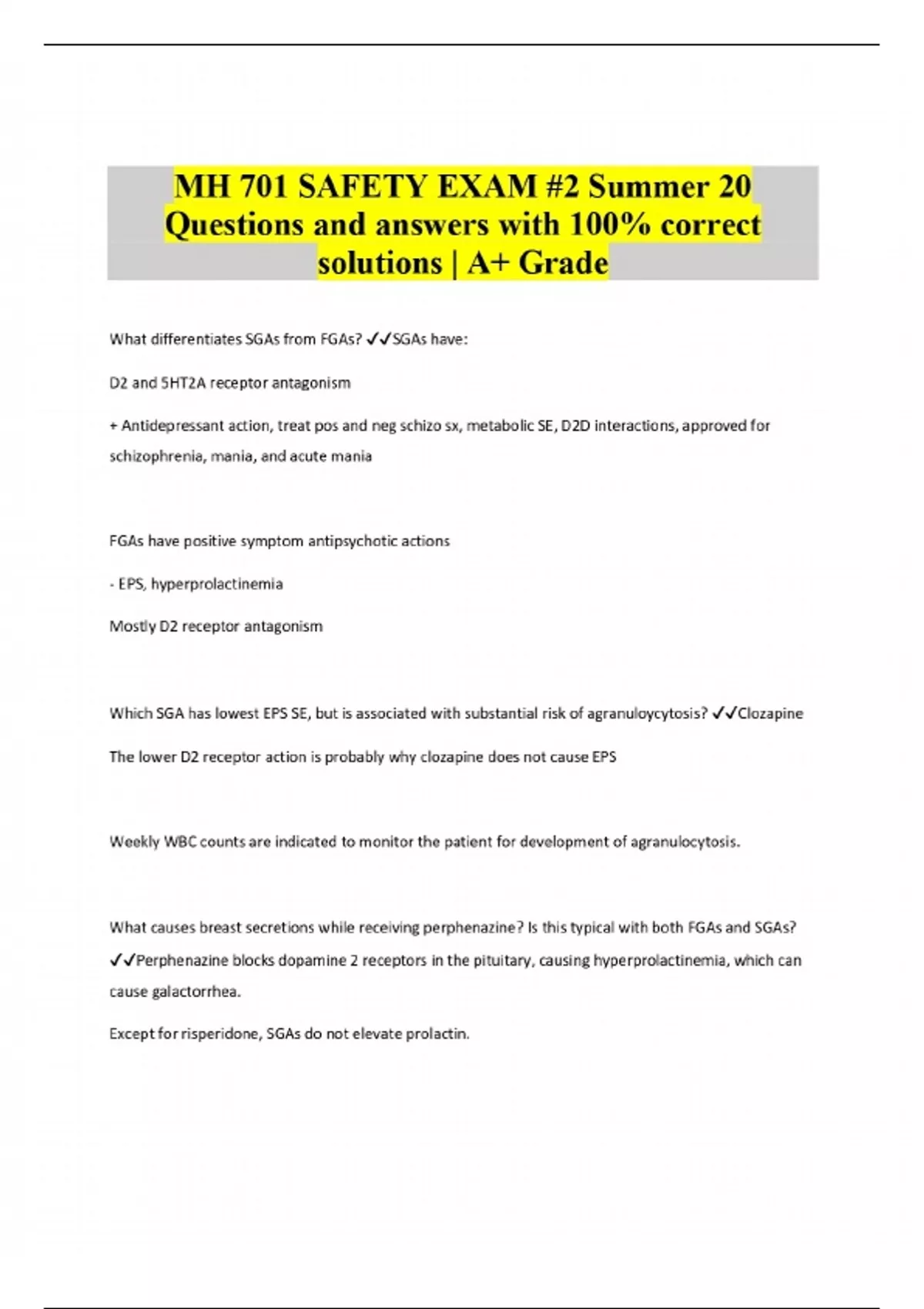 MH 701 SAFETY EXAM #2 Summer 20 Questions and answers with 100% correct solutions | A+ Grade