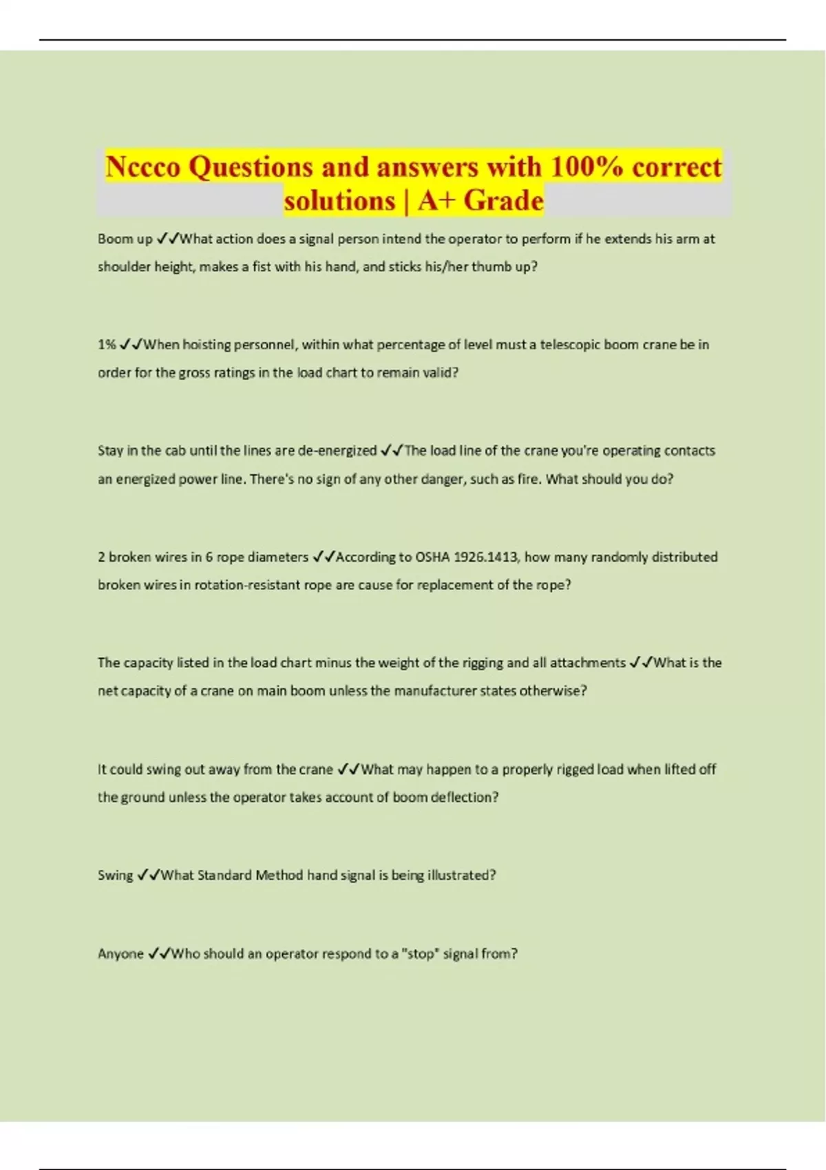 Nccco Questions and answers with 100% correct solutions | A+ Grade