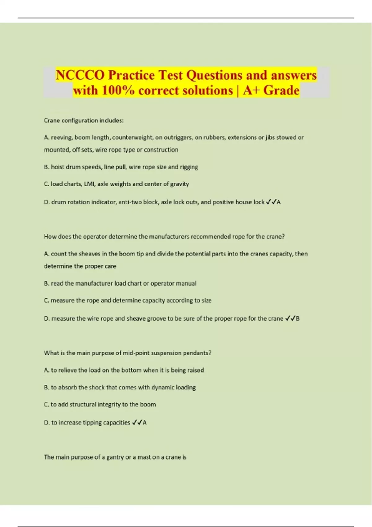 NCCCO Practice Test Questions and answers with 100% correct solutions | A+ Grade