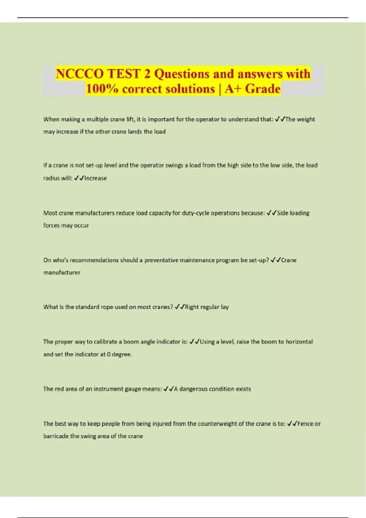 NCCCO TEST 2 Questions and answers with 100% correct solutions | A+ Grade