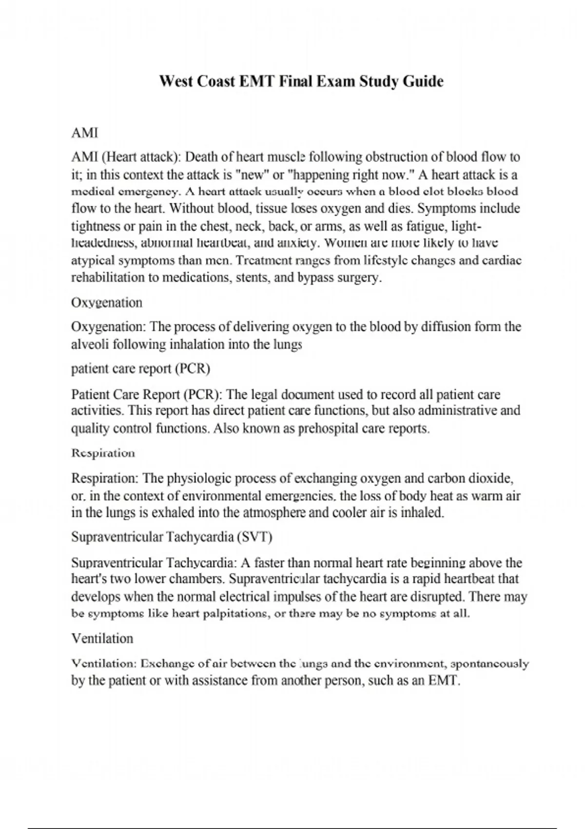 West Coast EMT Final Exam Study Guide