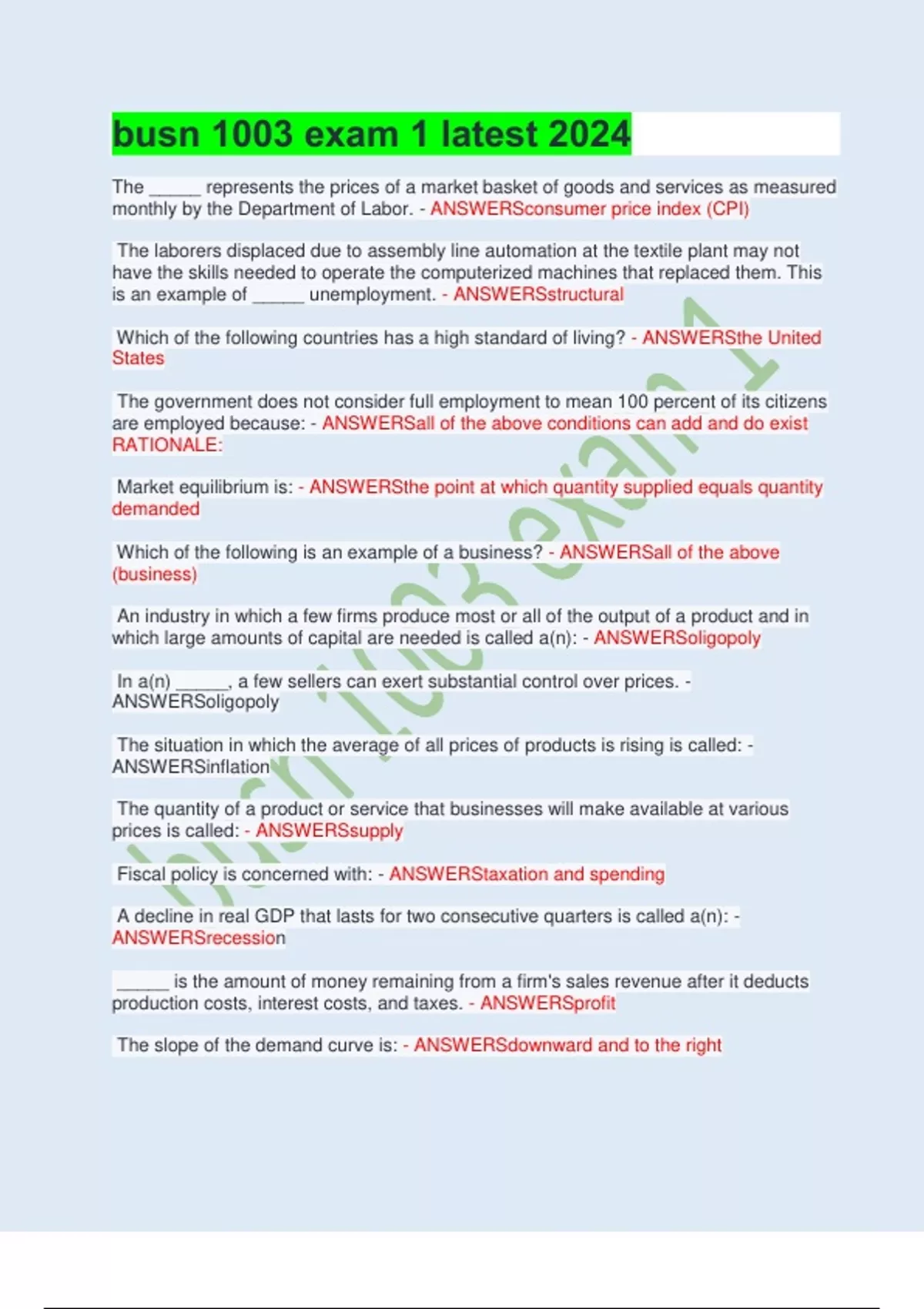 ANSWERSrecession