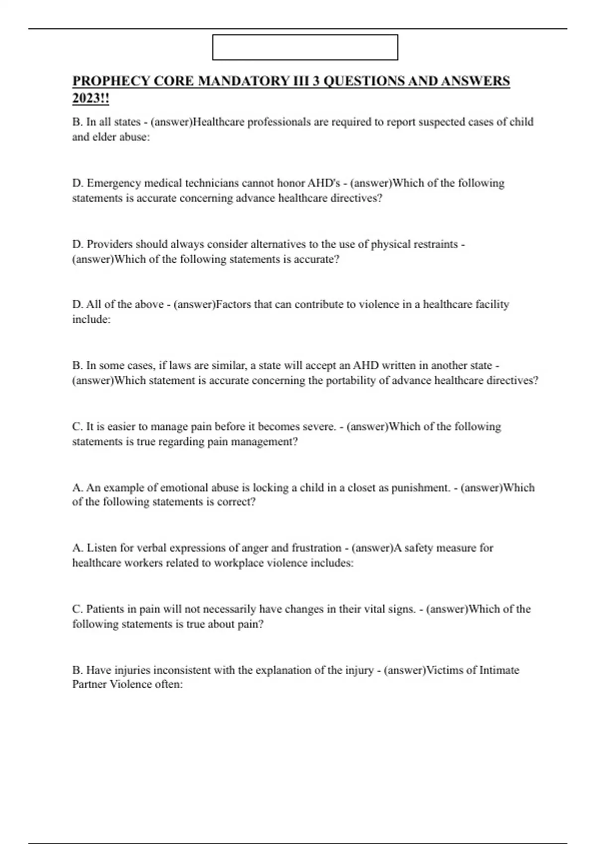 PROPHECY CORE MANDATORY III 3 QUESTIONS AND ANSWERS 2023!!