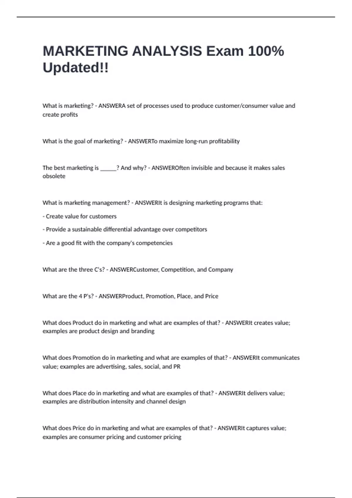 ,What makes Marketing different from many other courses? - ANSWERMarketing is integrative (vs.