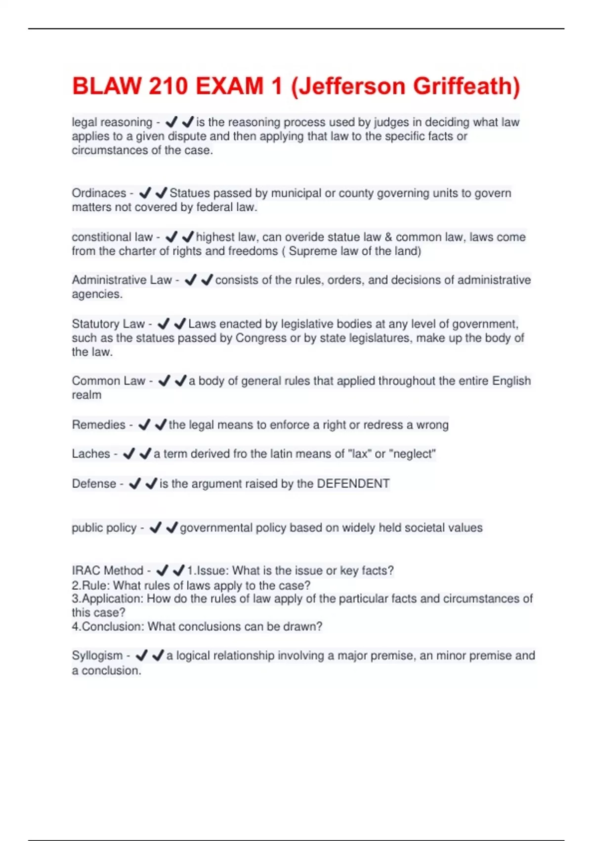 BLAW 210 EXAM 1 (Jefferson Griffeath)