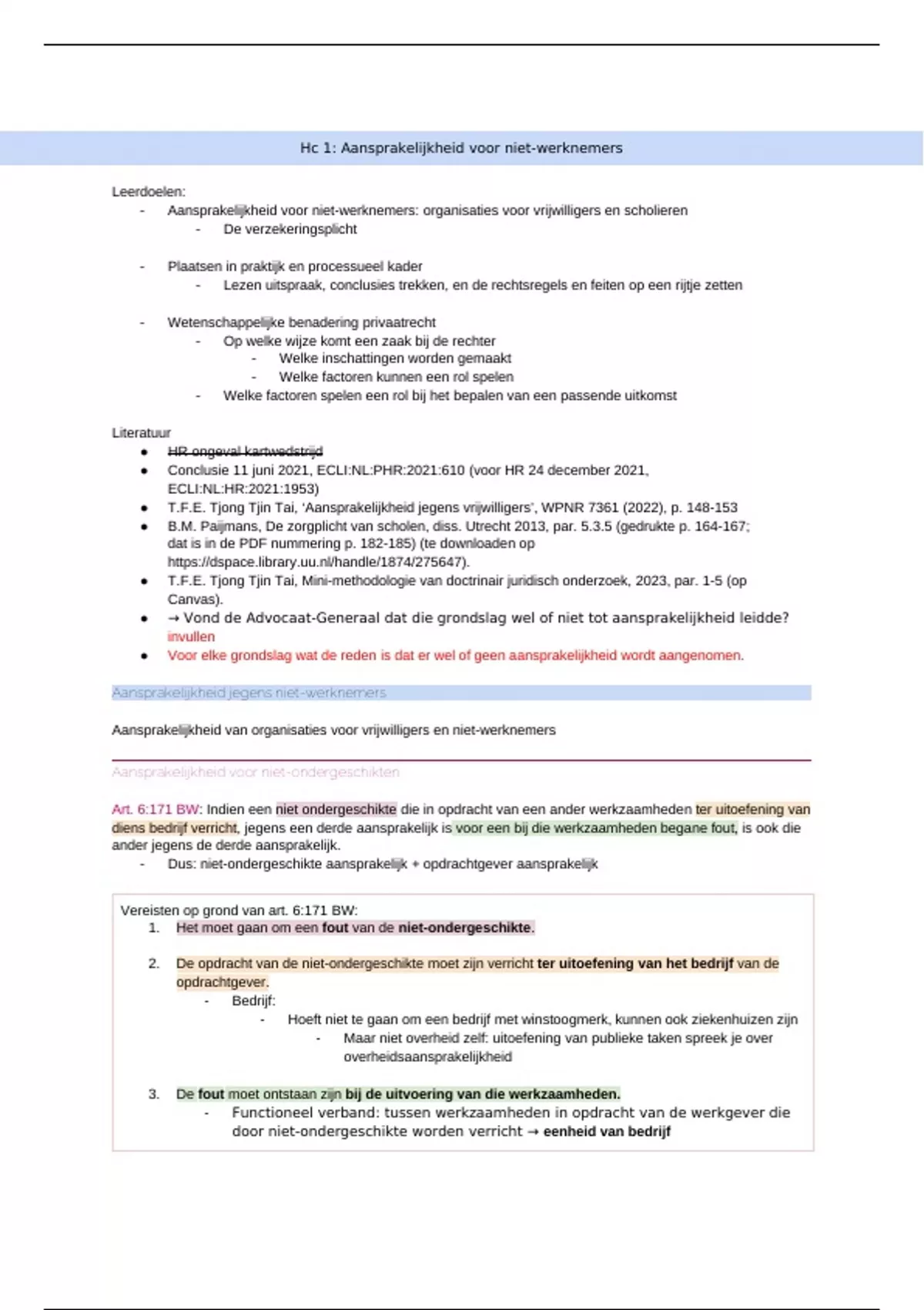 Hc 1: Aansprakelijkheid voor niet-werknemers