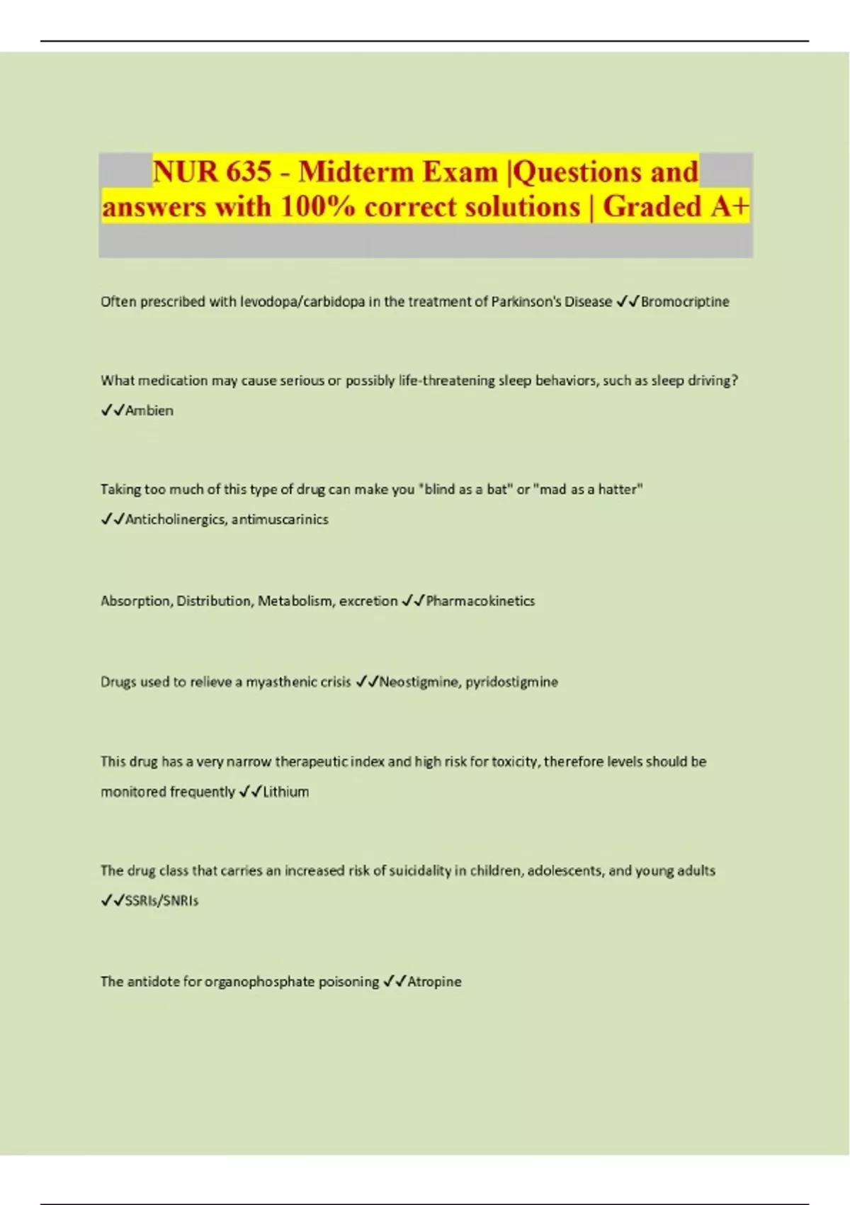 NUR 635 - Midterm Exam |Questions and answers with 100% correct solutions | Graded A+