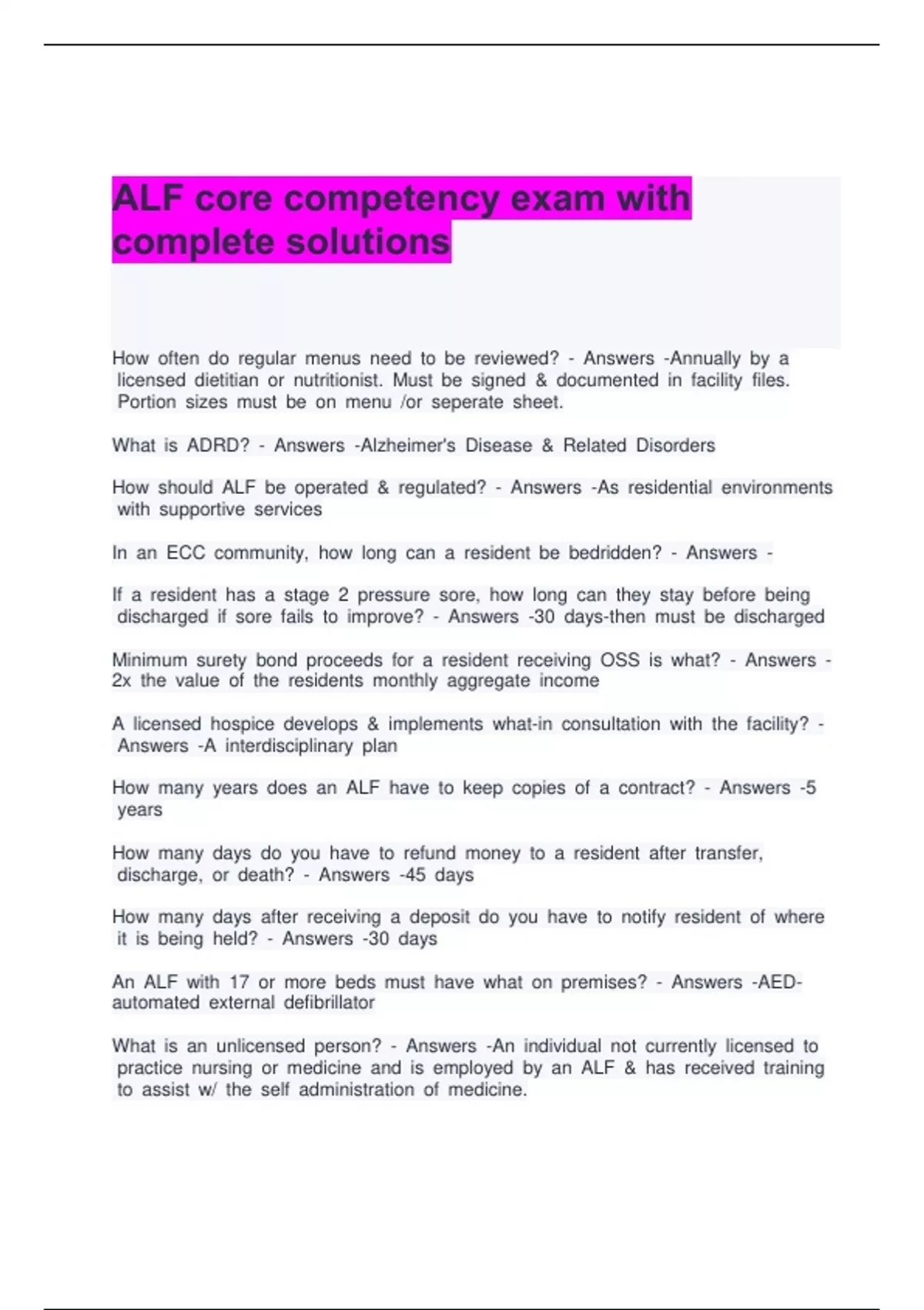 ALF core competency exam with