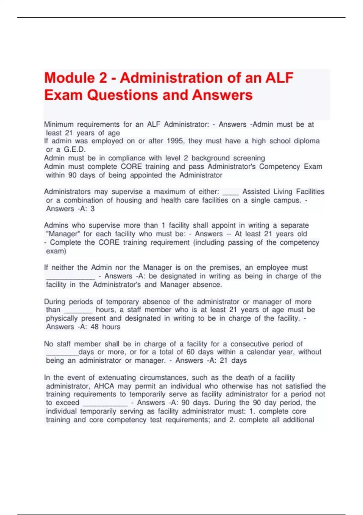 Module 2 - Administration of an ALF Exam Questions and Answers