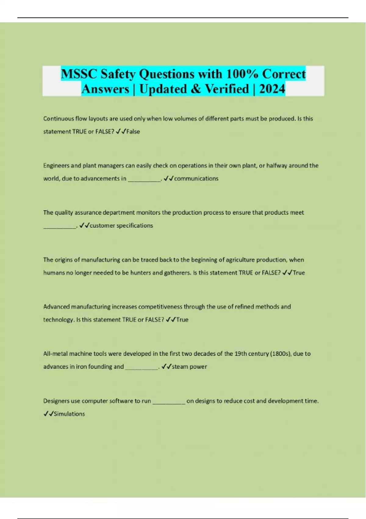 MSSC Safety Questions with 100% Correct Answers | Updated & Verified | 2024