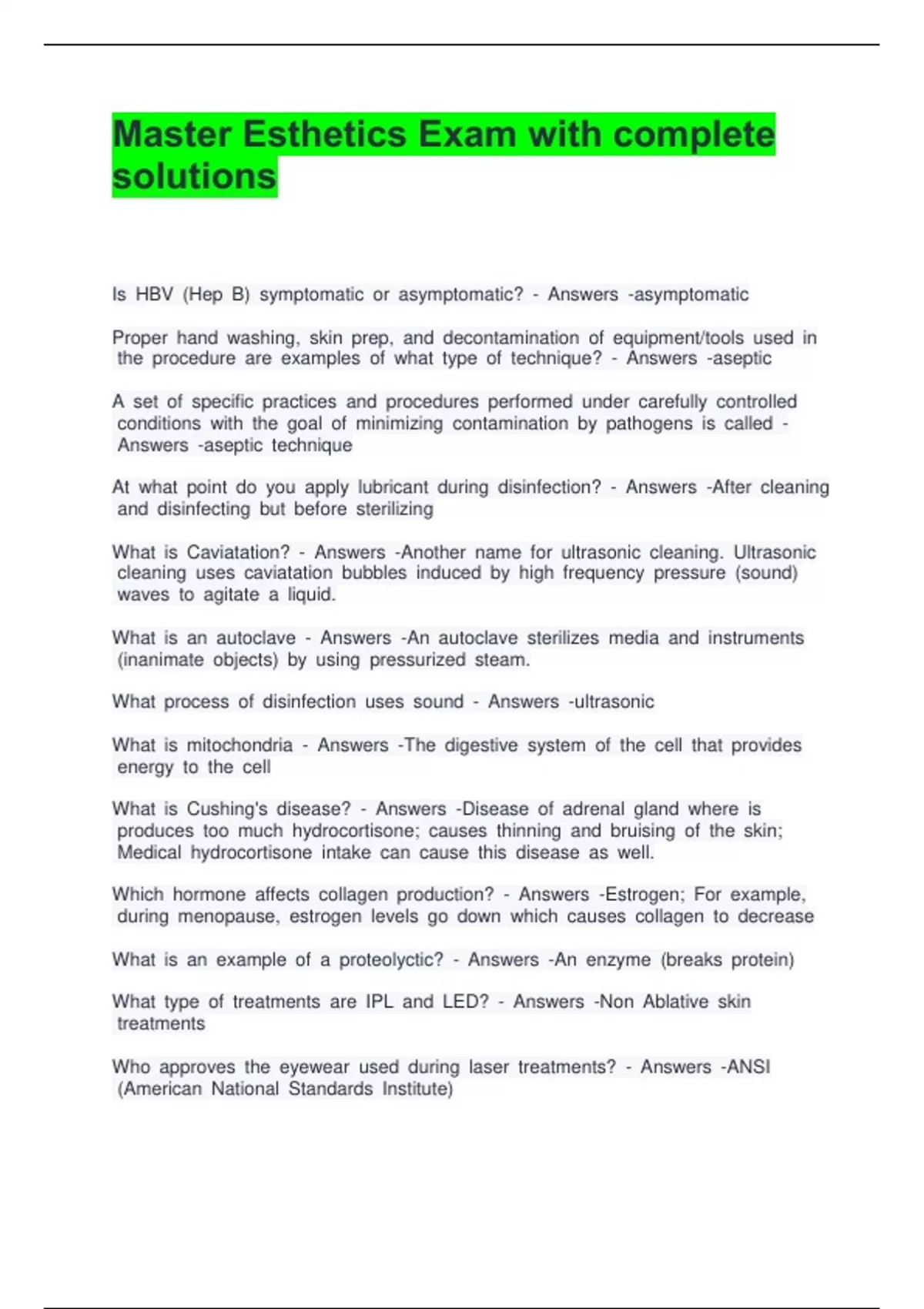Master Esthetics Exam with complete solutions