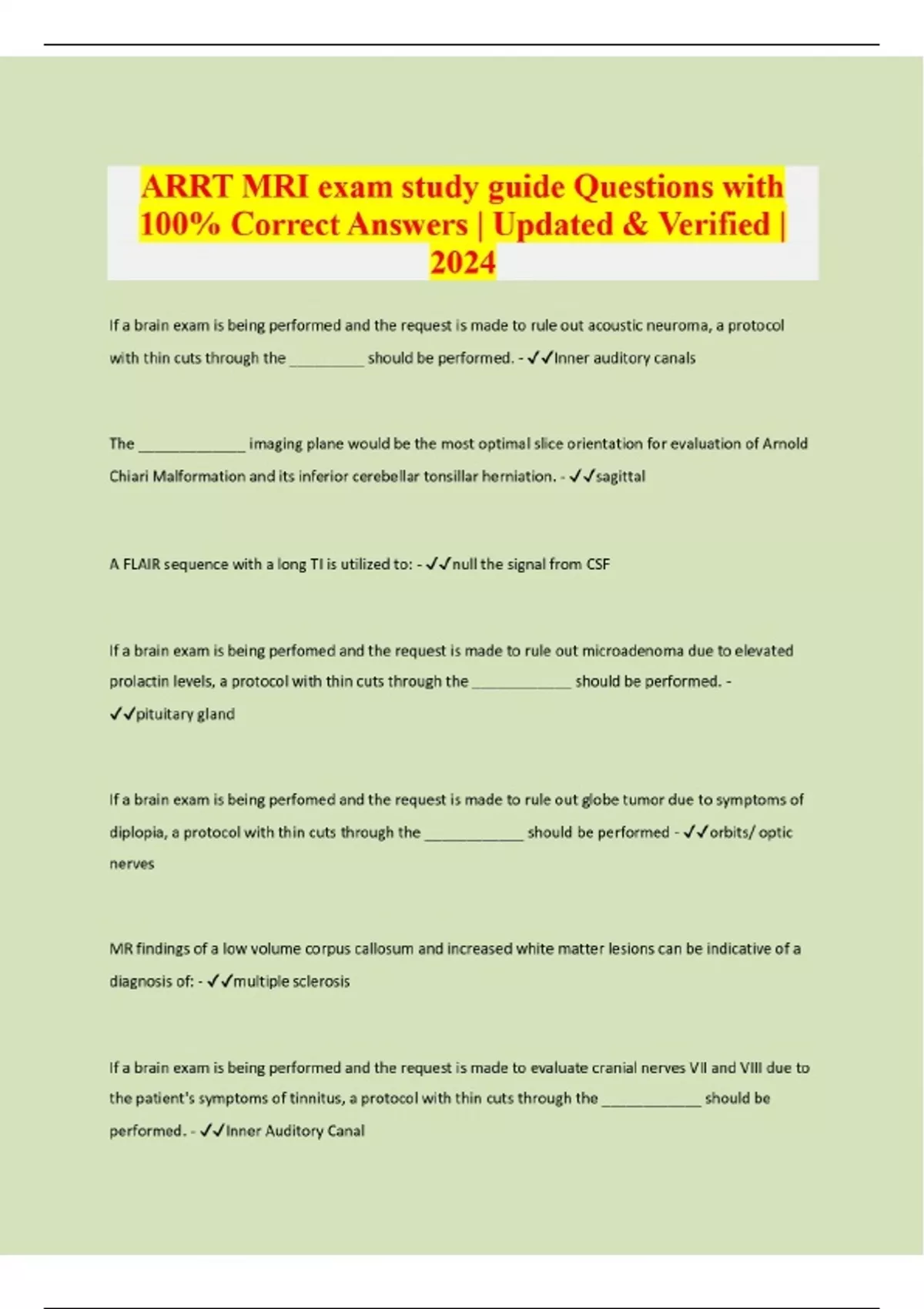 ARRT MRI exam study guide Questions with 100% Correct Answers | Updated & Verified | 2024