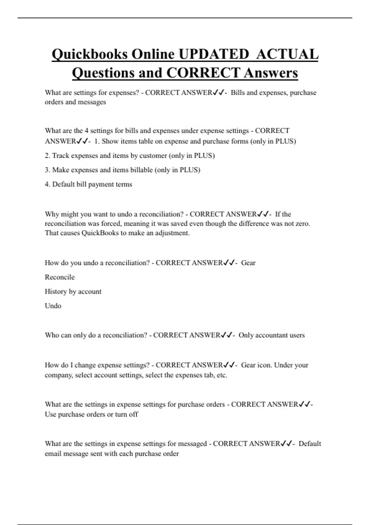 What are settings for expenses? - CORRECT ANSWER✔✔- Bills and expenses, purchase