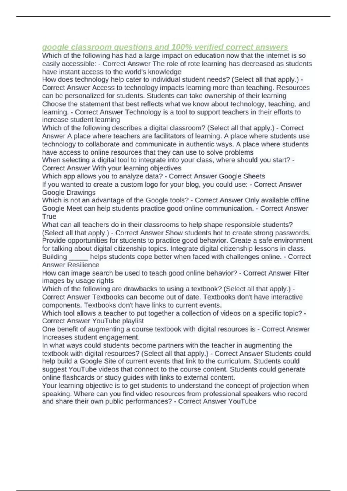 textbook with digital resources? (Select all that apply.) - Correct Answer Students could