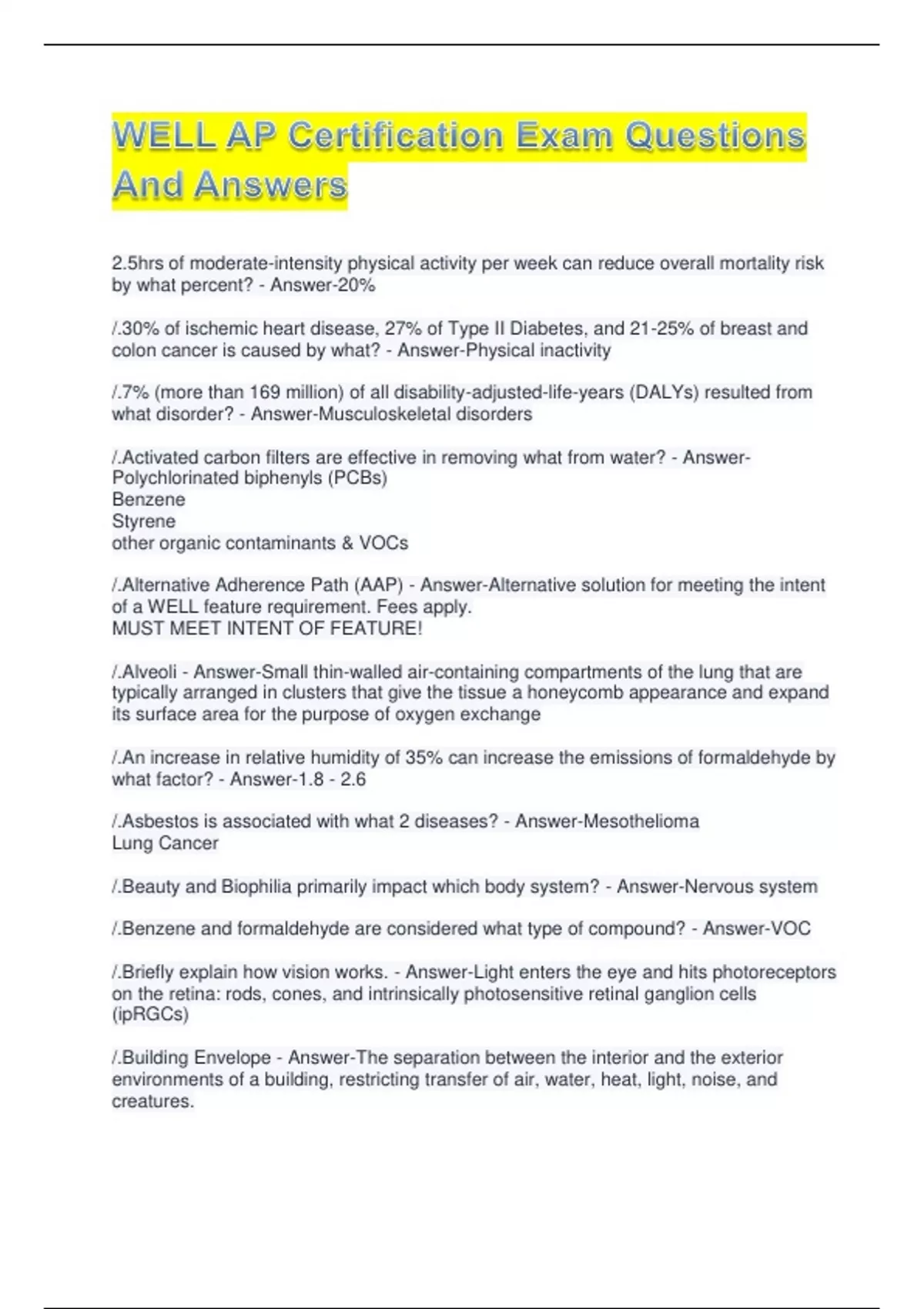 /.Exposure to asbestos can occur how? - Answer-Via inhalation when building materials