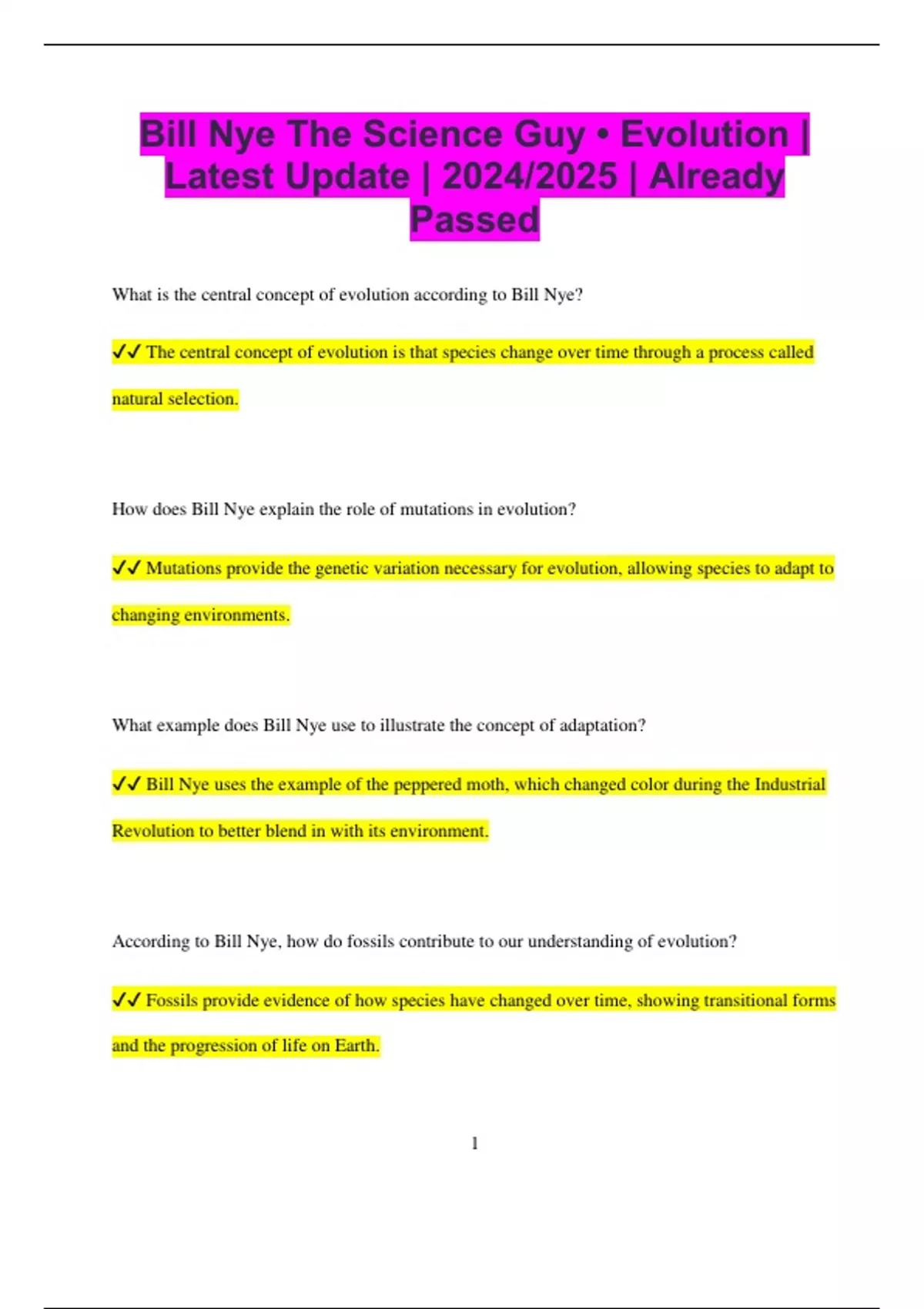 ✔✔ The central concept of evolution is that species change over time through a process called