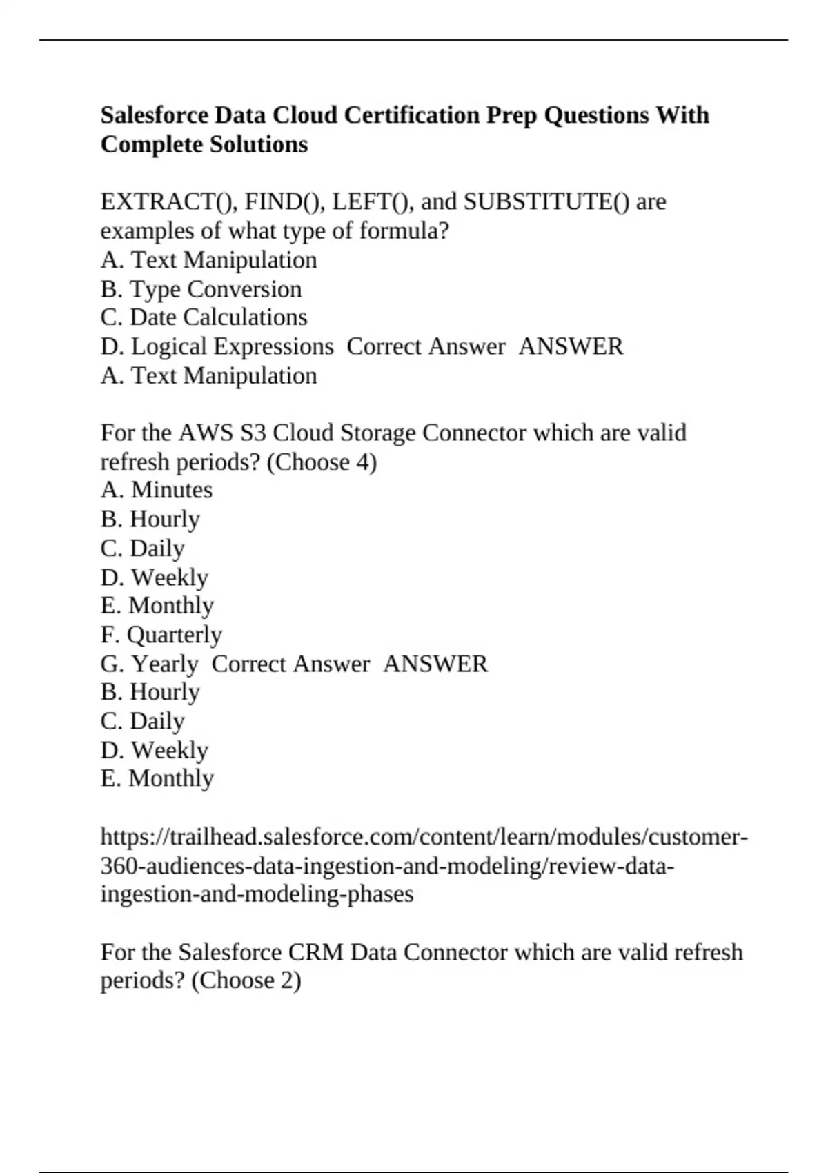 Salesforce Data Cloud Certification Prep Questions With Complete Solutions