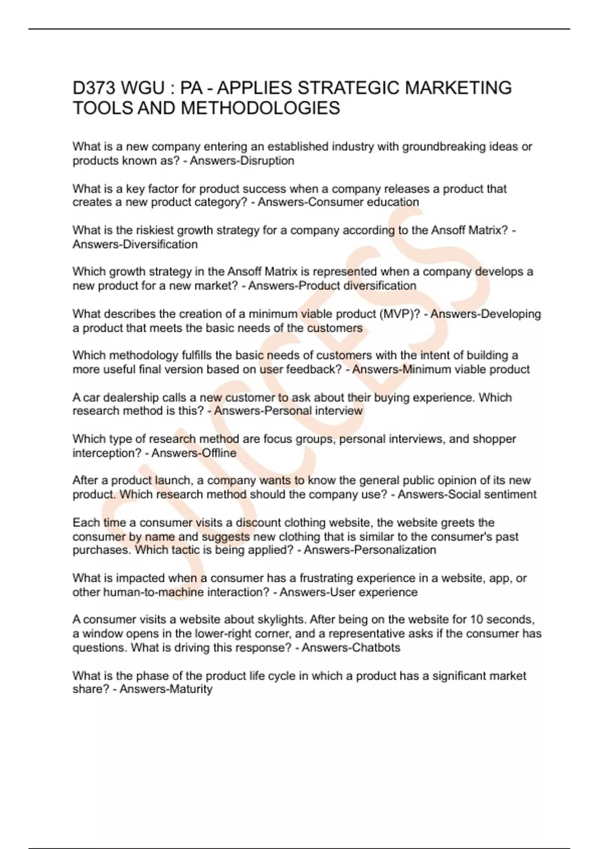 D373 WGU : PA - APPLIES STRATEGIC MARKETING TOOLS AND METHODOLOGIES
