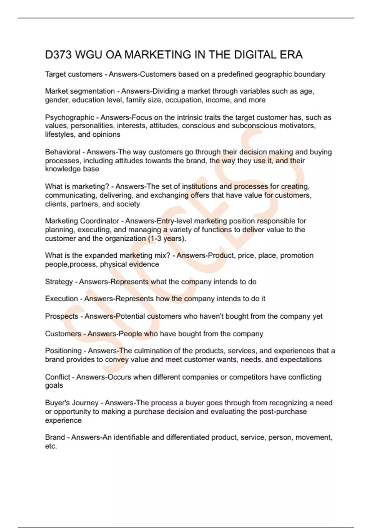 D373 WGU OA MARKETING IN THE DIGITAL ERA
