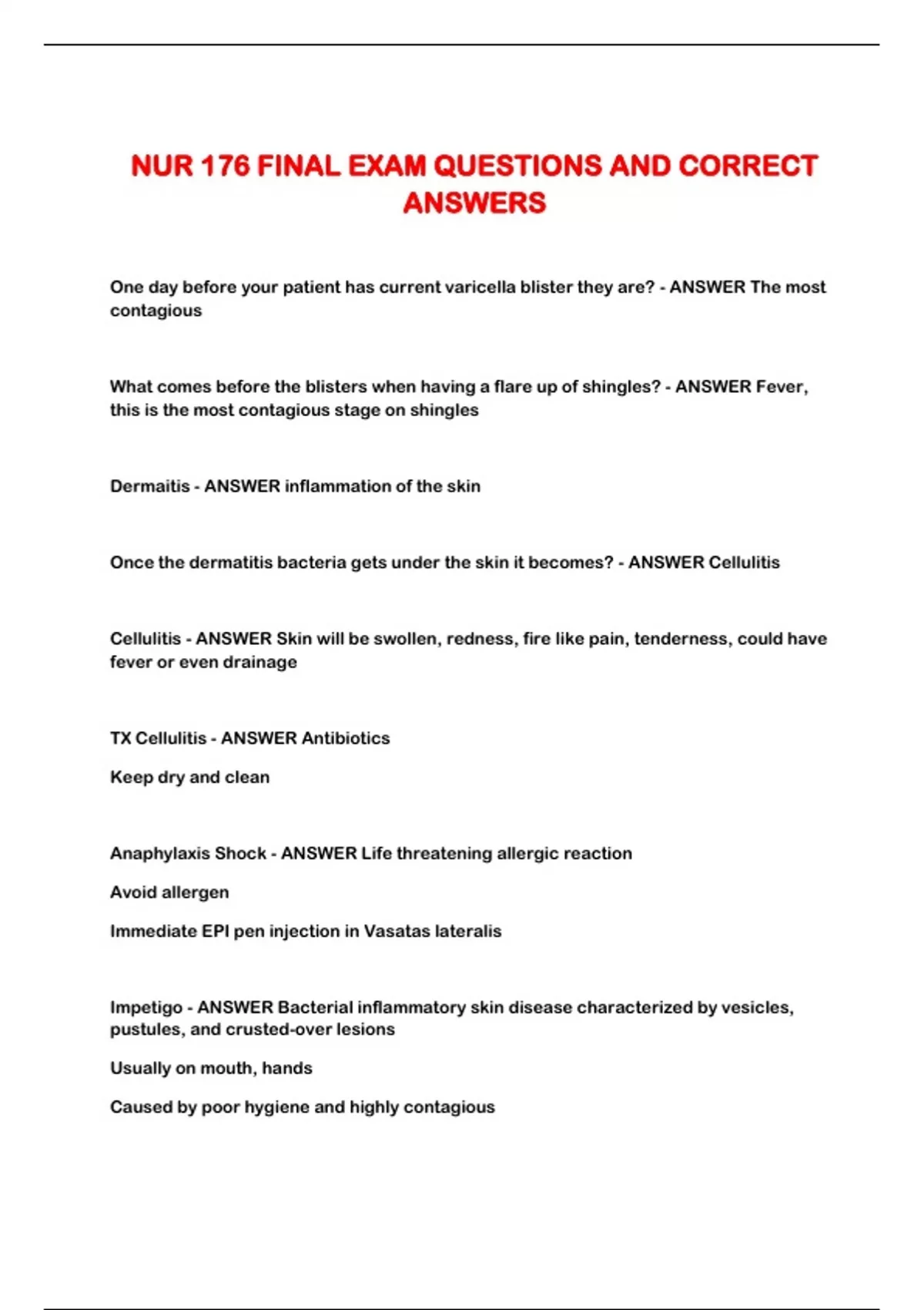 NUR 176 FINAL EXAM QUESTIONS AND CORRECT ANSWERS...