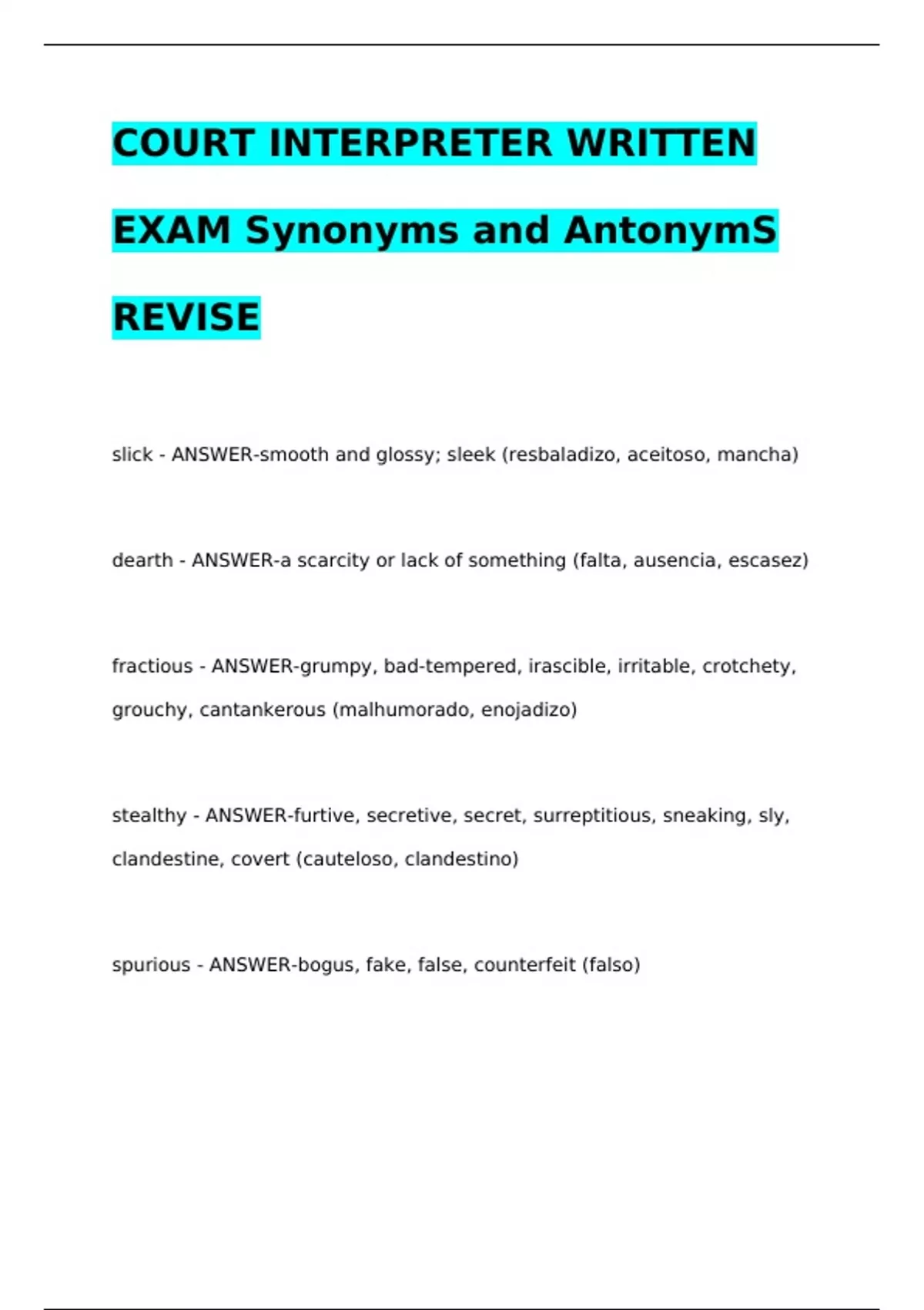 spurious - ANSWER-bogus, fake, false, counterfeit (falso)