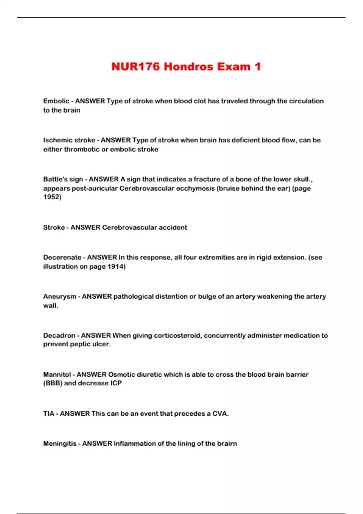 Embolic - ANSWER Type of stroke when blood clot has traveled through the circulation
