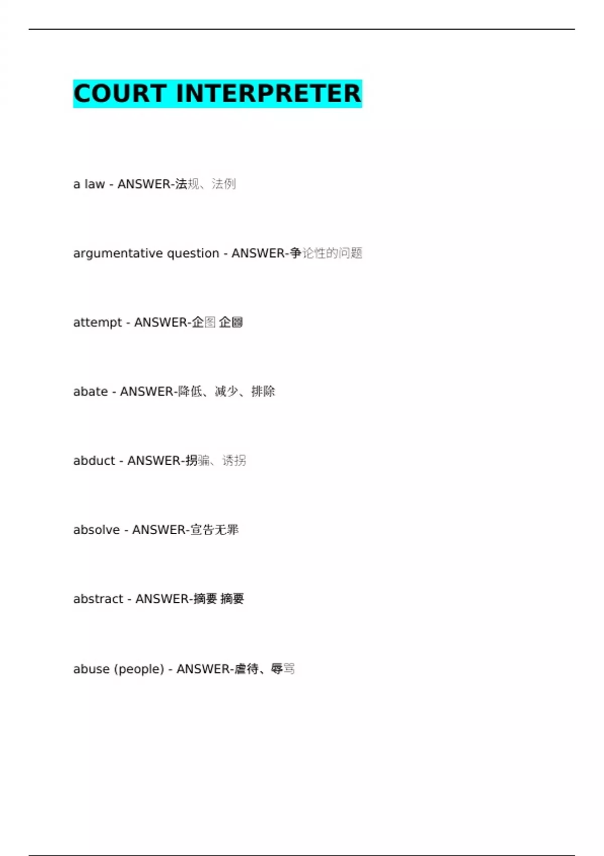 ,abortion - ANSWER-堕胎 墮胎