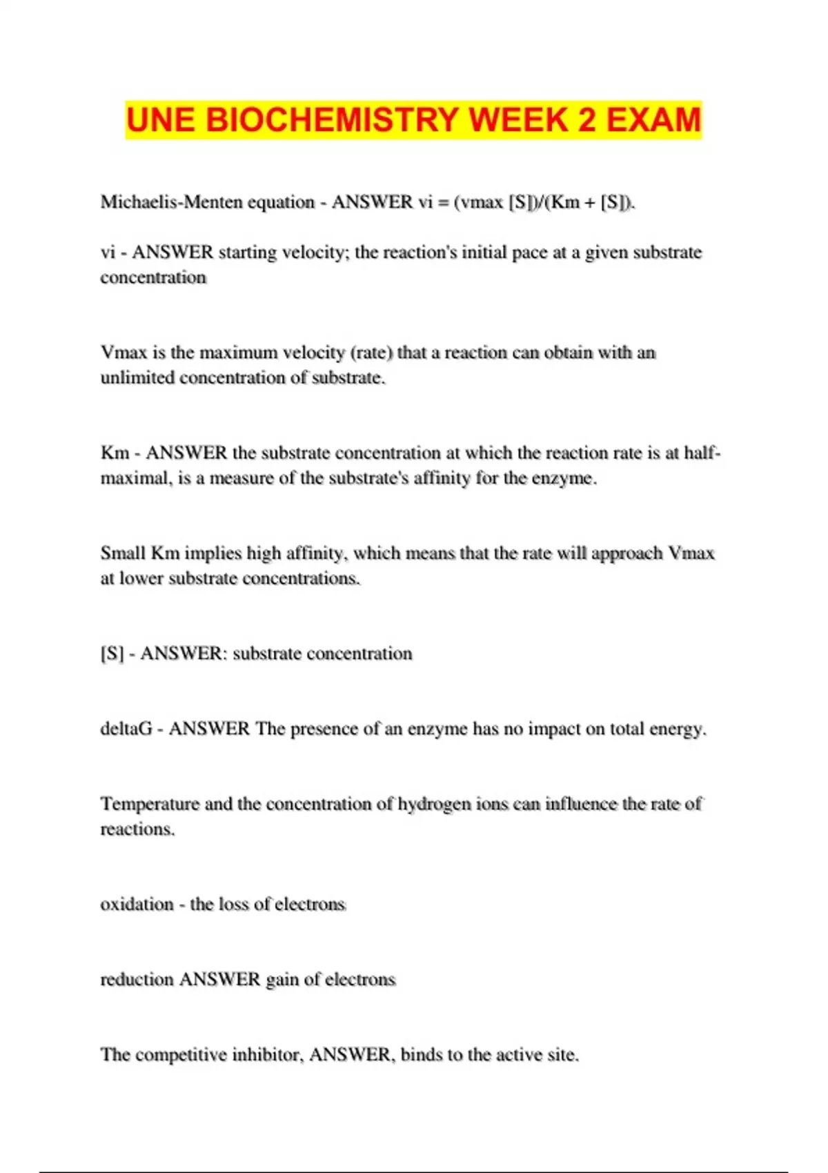 UNE BIOCHEMISTRY WEEK 2 EXAM...