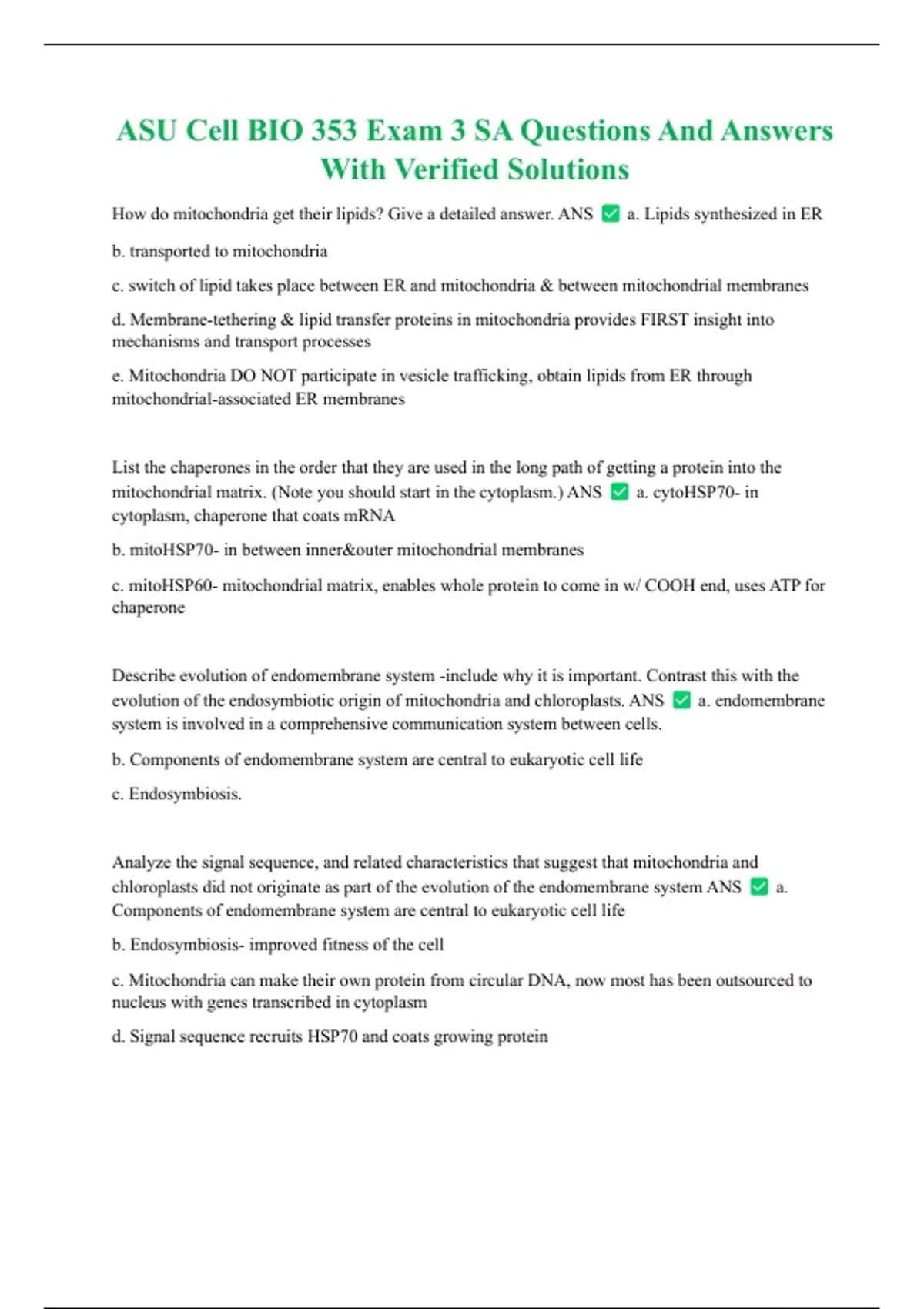 mitochondrial matrix. (Note you should start in the cytoplasm.) ANS a. cytoHSP70- in
