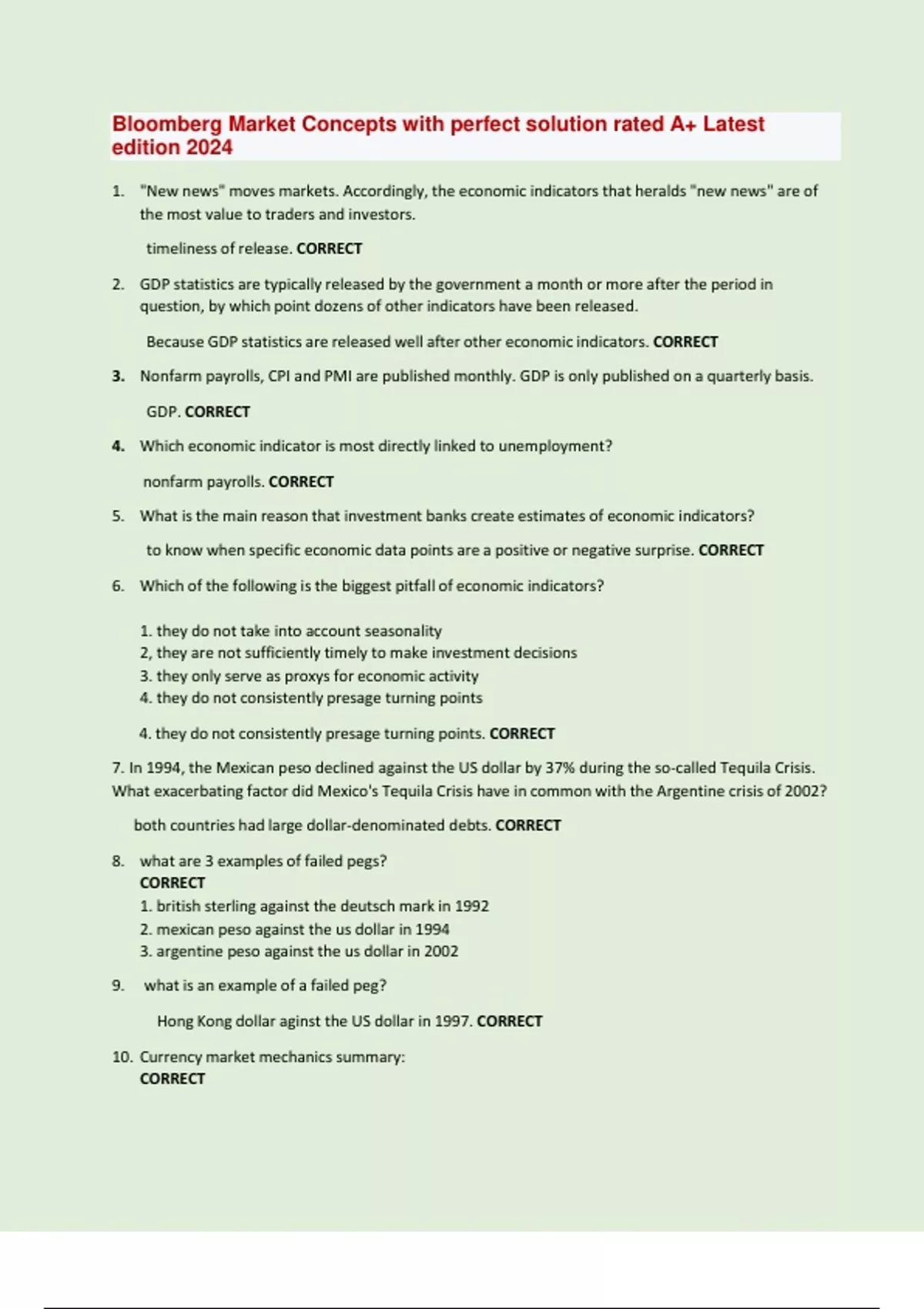 Bloomberg Market Concepts with perfect solution rated A+ Rated 2024