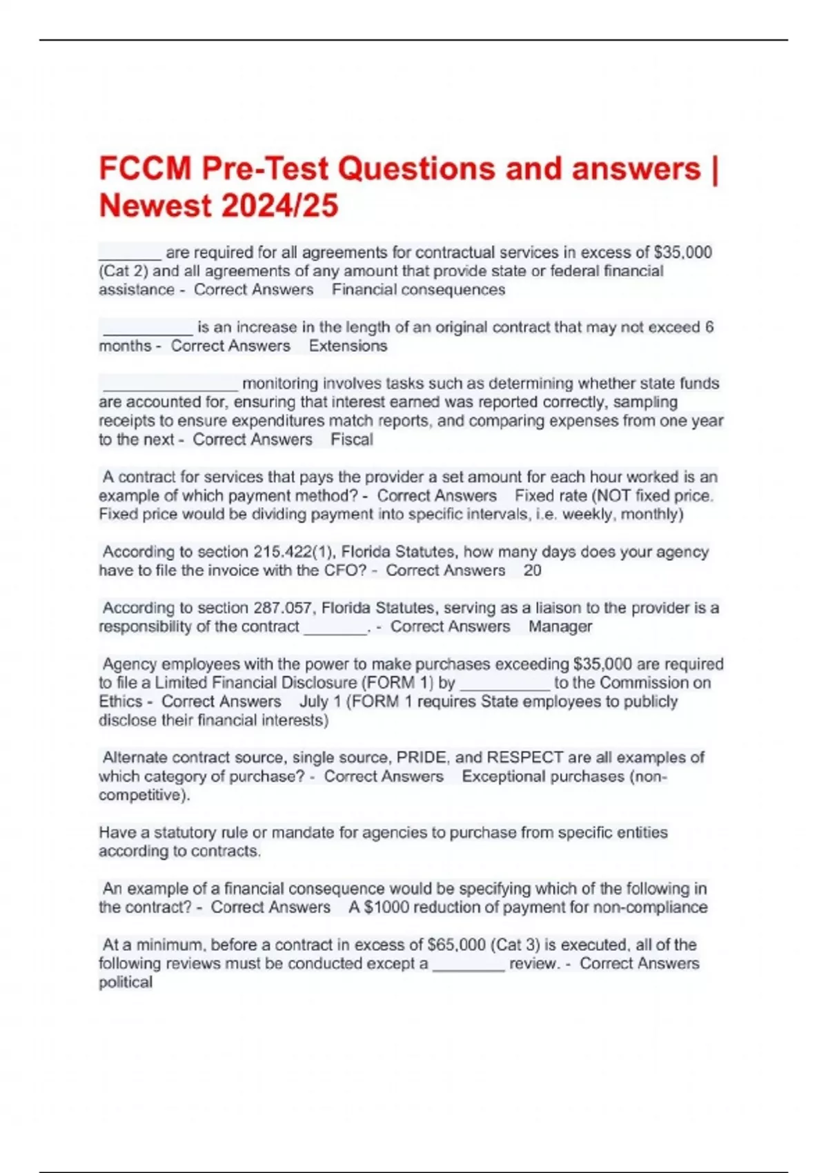 FCCM Pre-Test Questions and answers | Newest 2024/25