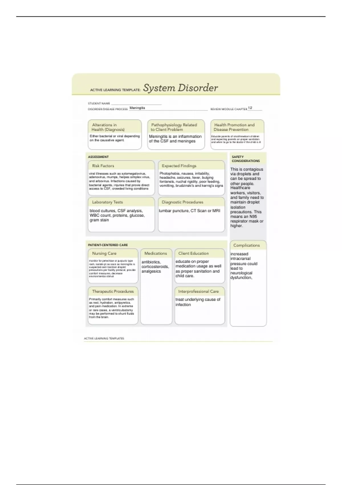 This is a comprehensive and detailed ATI template on system disorder for NUR 207.