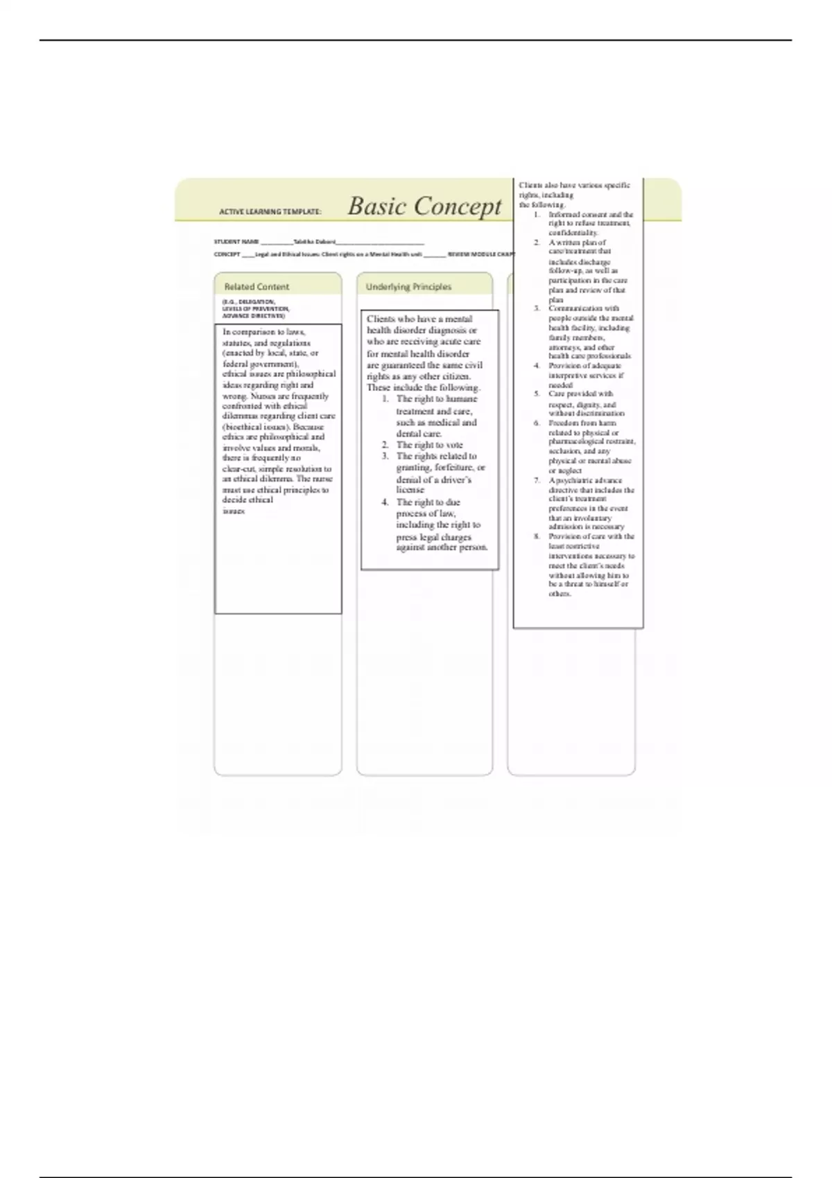 CONCEPT ____Legal and Ethical Issues: Client rights on a Mental Health unit _______ REVIEW MODULE CHAPT care/treatment that