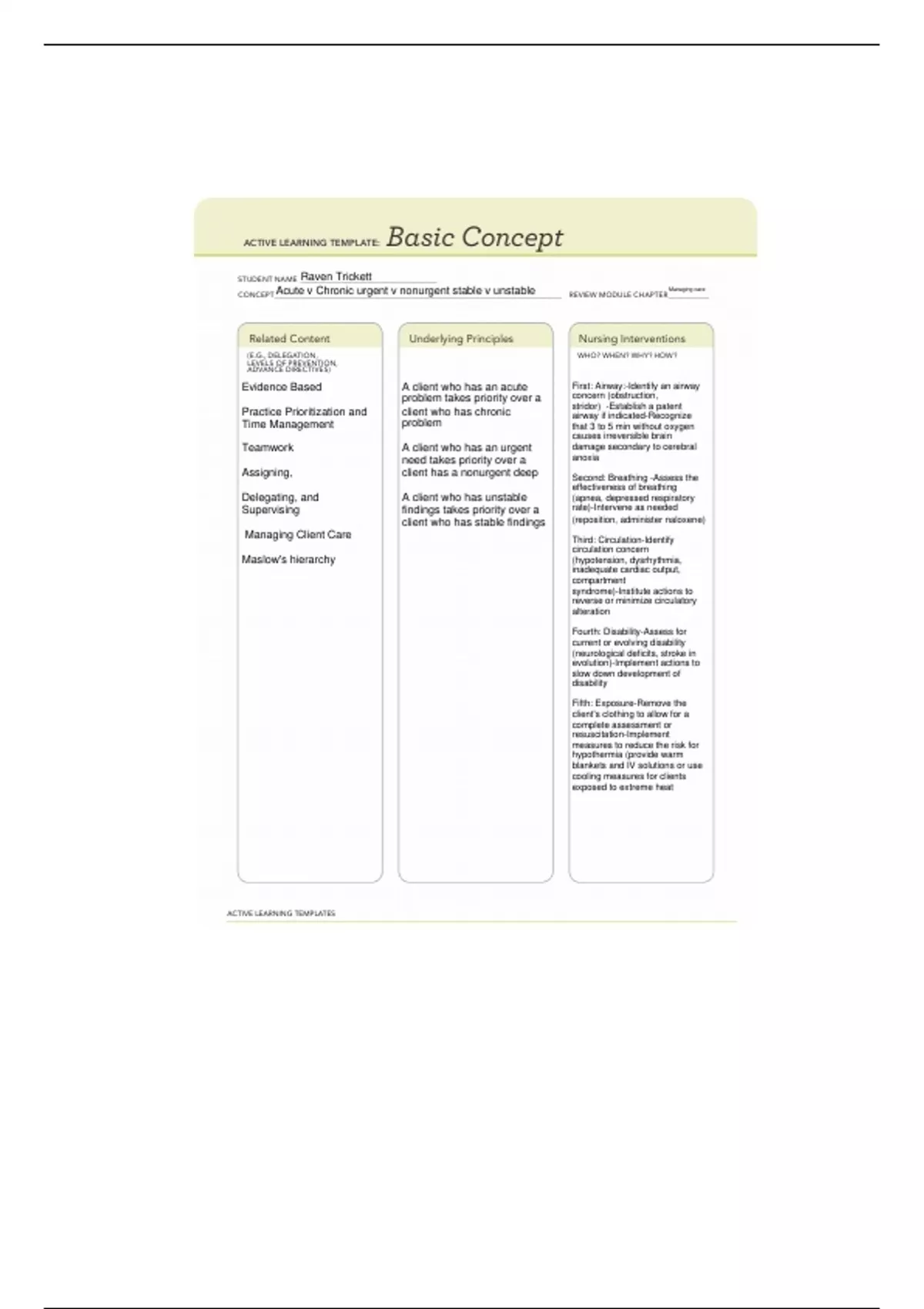 Evidence Based A client who has an acute First: Airway:-Identify an airway