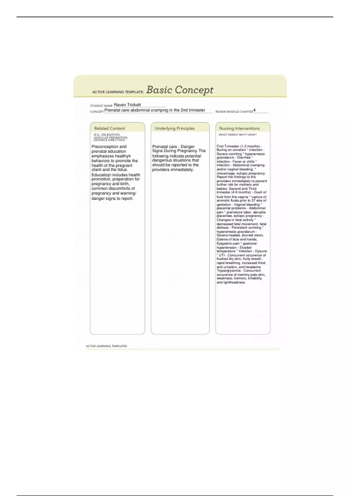 Prenatal Care Abdominal Cramping Template for Nur 207. *Essential and valuable Study Material!!