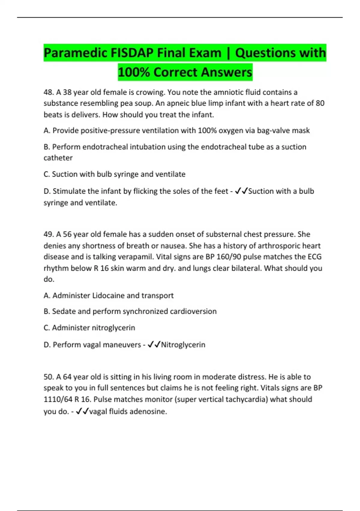 D. Synchronized cardioversion at 100 J - ✔️✔️Synchronized cardio100J