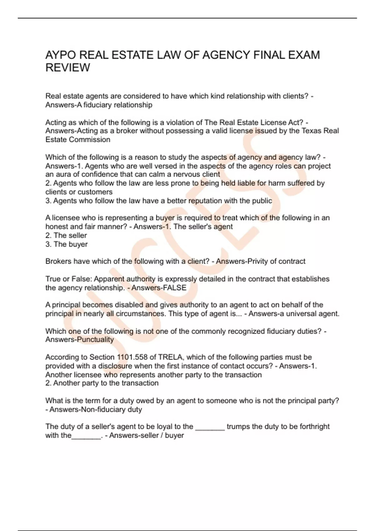 AYPO REAL ESTATE LAW OF AGENCY FINAL EXAM