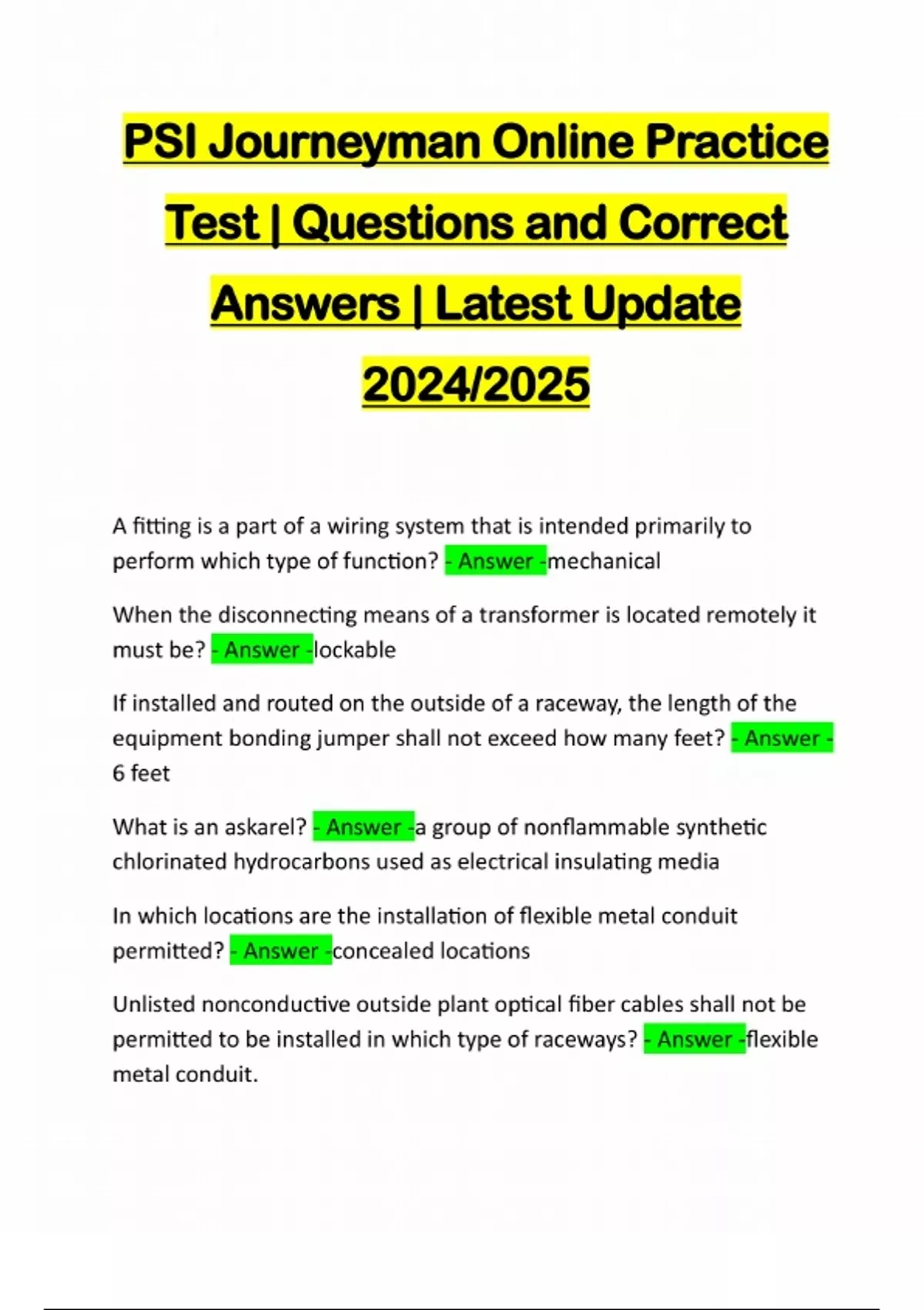 PSI Journeyman Online Practice Test | Questions and Correct Answers | Latest Update 2024/2025