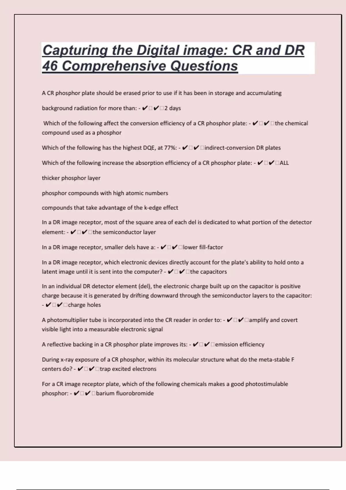 Which of the following affect the conversion efficiency of a CR phosphor plate: - ✔ ✔ the chemical