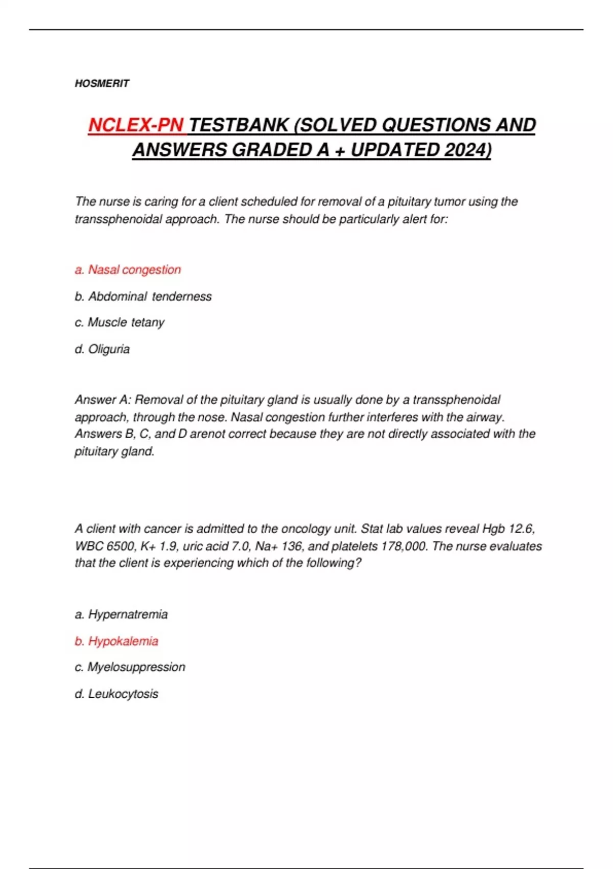 NCLEX-PN TESTBANK (SOLVED QUESTIONS AND