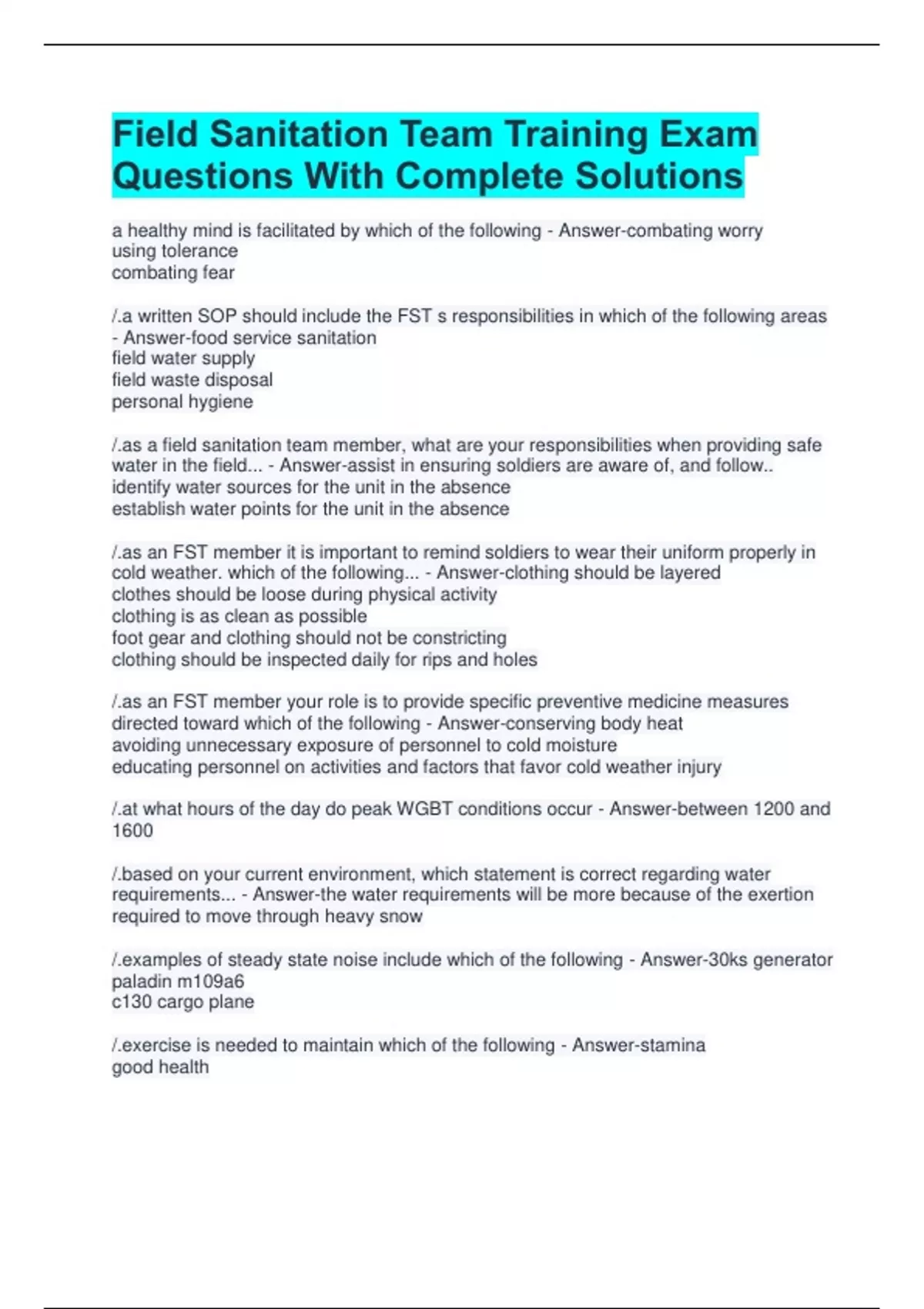water in the field... - Answer-assist in ensuring soldiers are aware of, and follow..