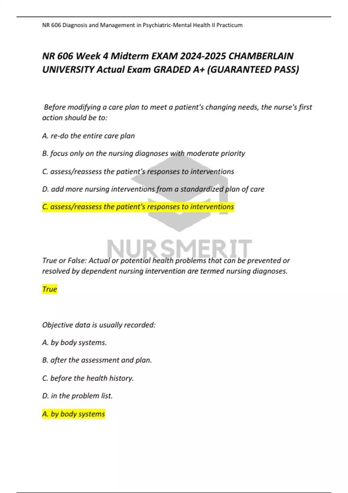 NR 606 Week 4 Midterm EXAM 2024-2025 CHAMBERLAIN