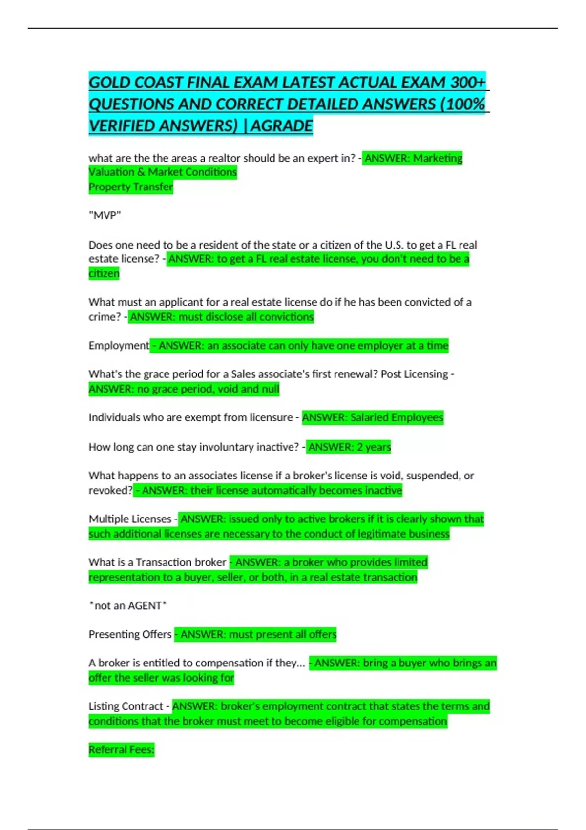 GOLD COAST FINAL EXAM LATEST ACTUAL EXAM 300+