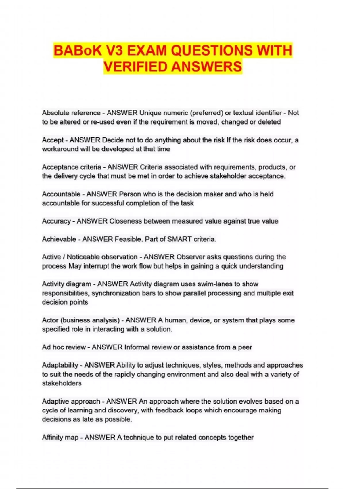 BABoK V3 EXAM QUESTIONS WITH VERIFIED ANSWERS...