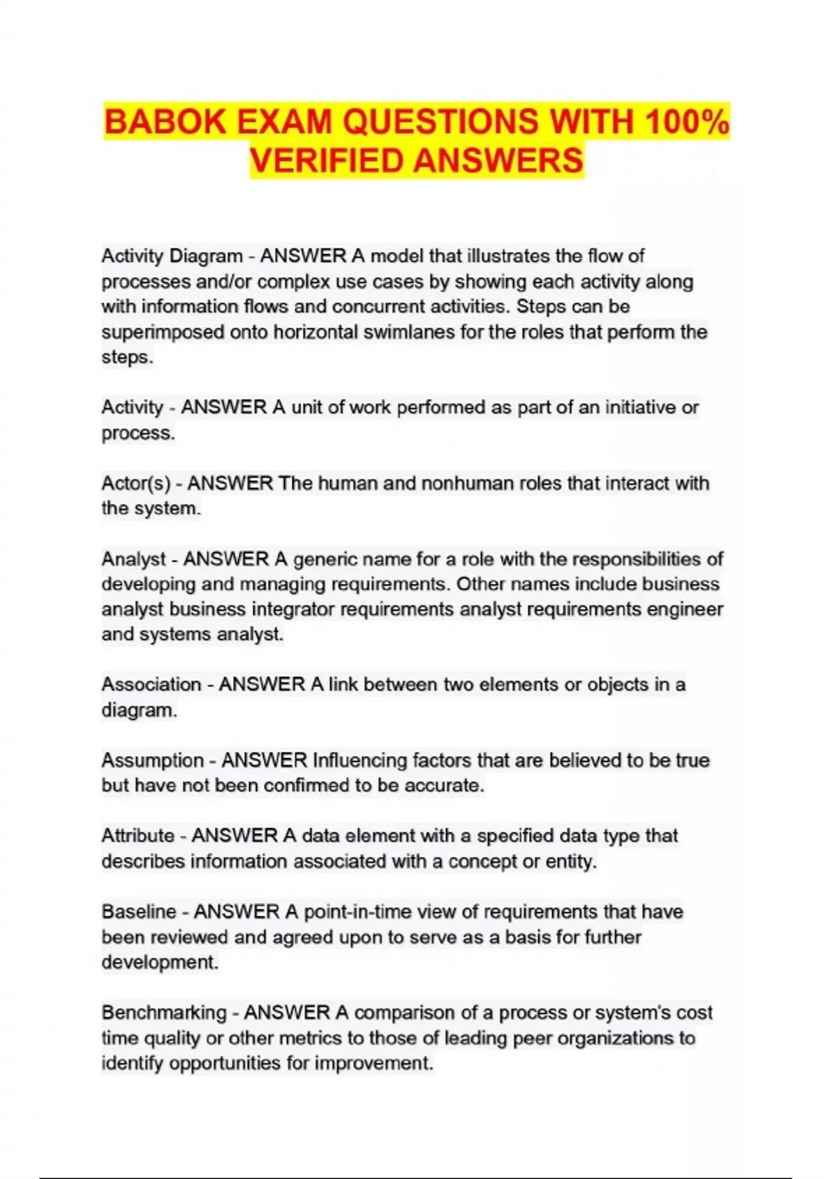 BABOK EXAM QUESTIONS WITH 100% VERIFIED ANSWERS...