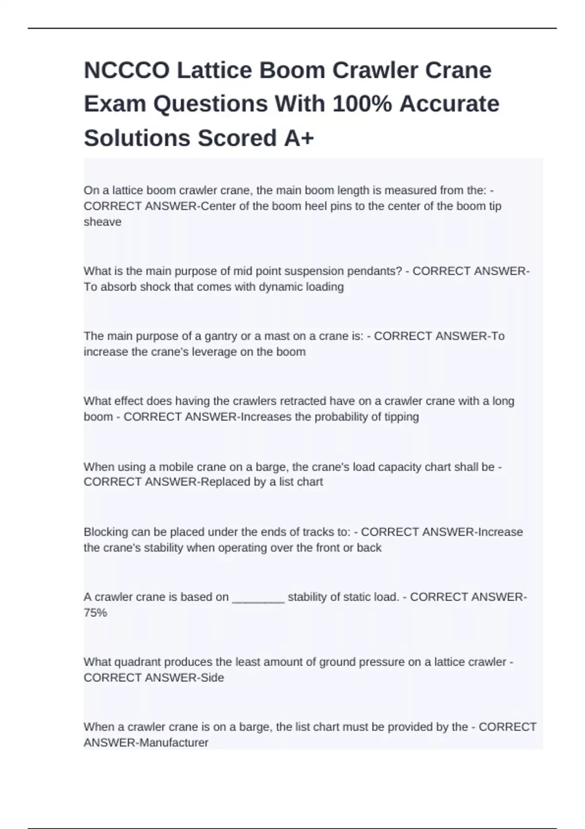 NCCCO Lattice Boom Crawler Crane Exam Questions With 100% Accurate Solutions Scored A+